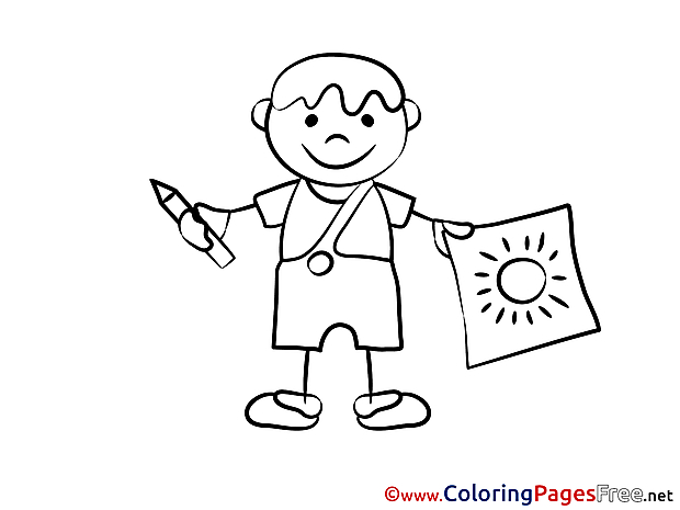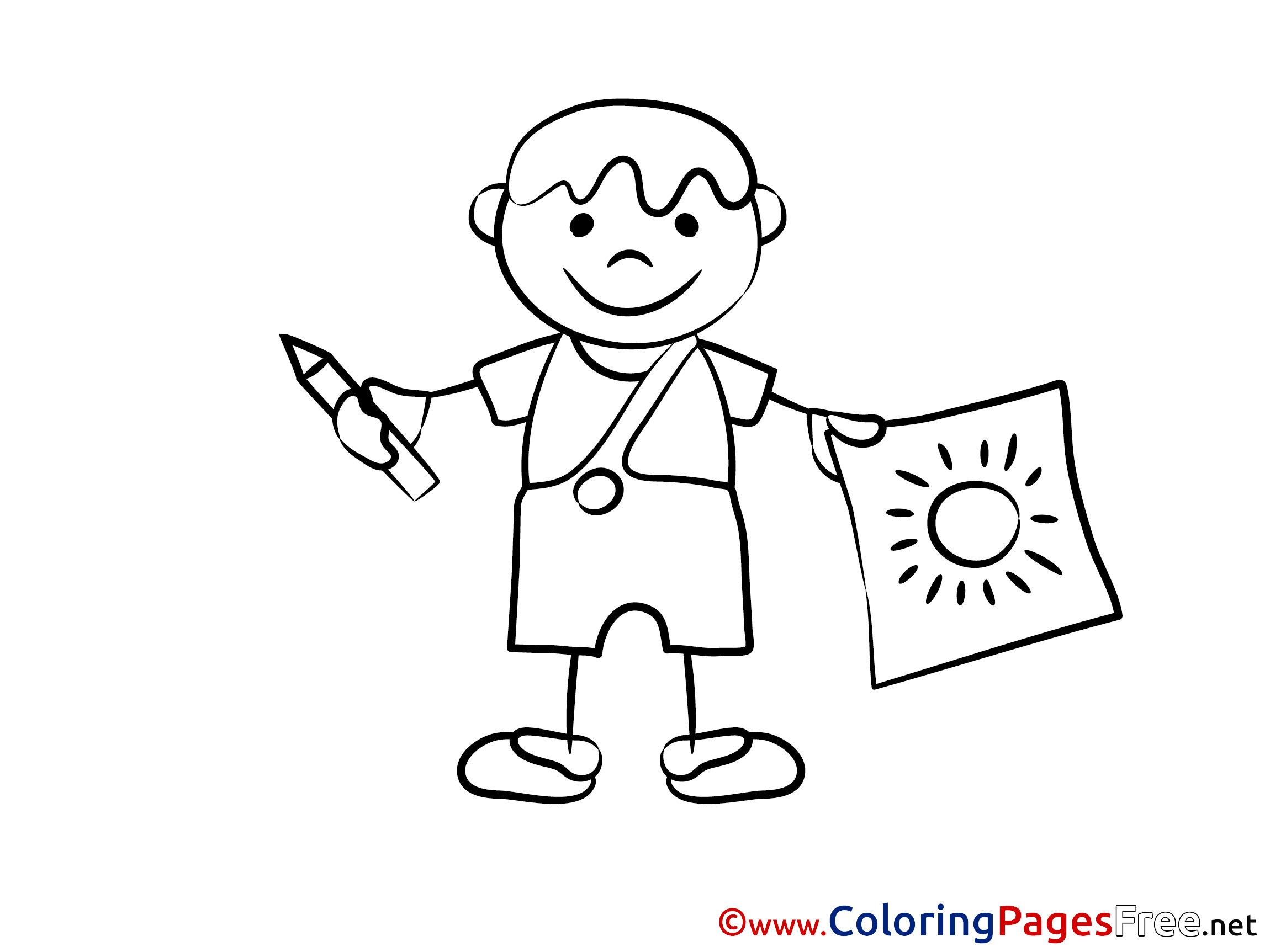 Title of Coloring Sheet: Image Children download Colouring Page Boy paints