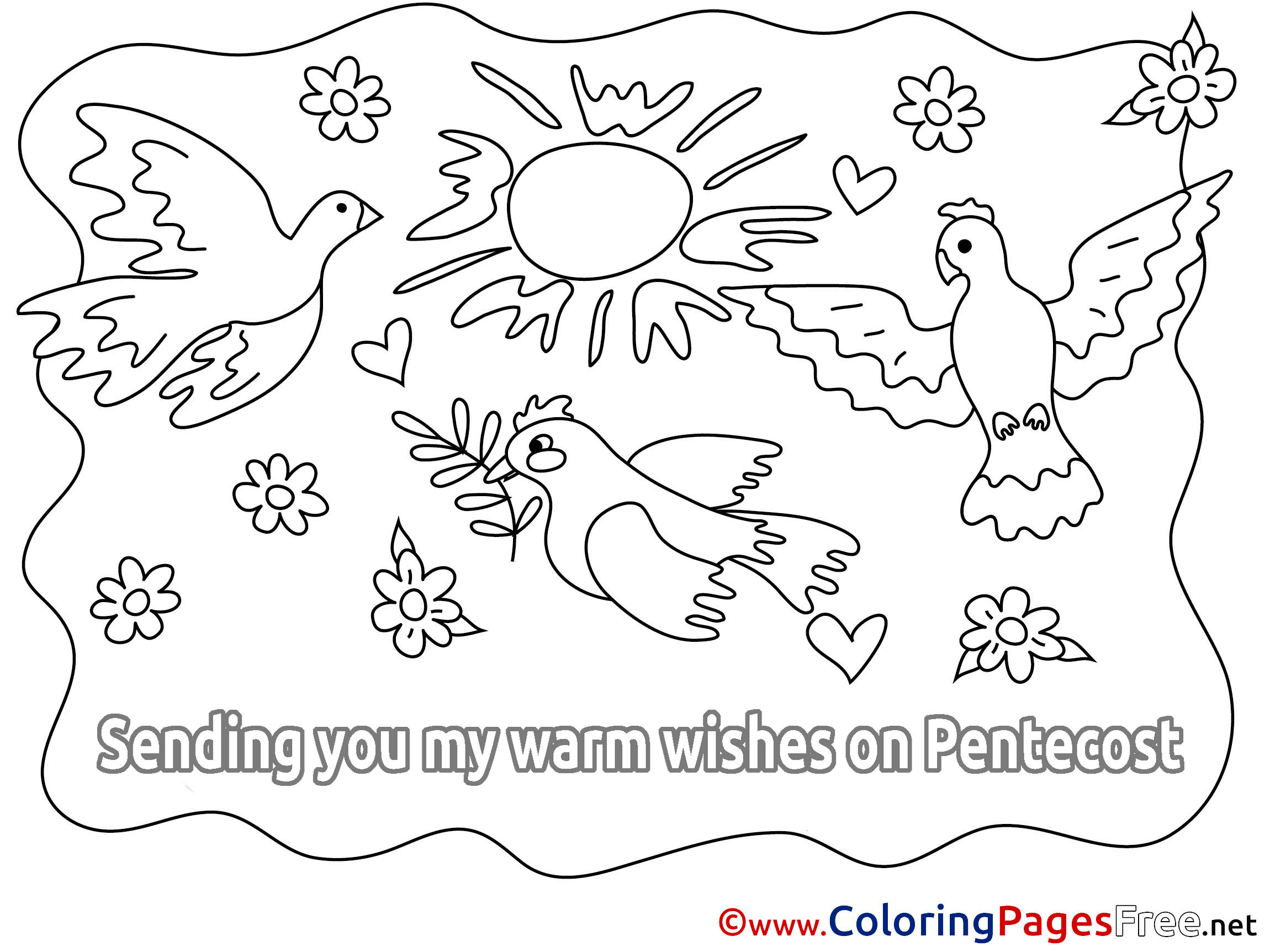 Title of Coloring Sheet: Flowers Pigeon for Kids Pentecost Colouring Page