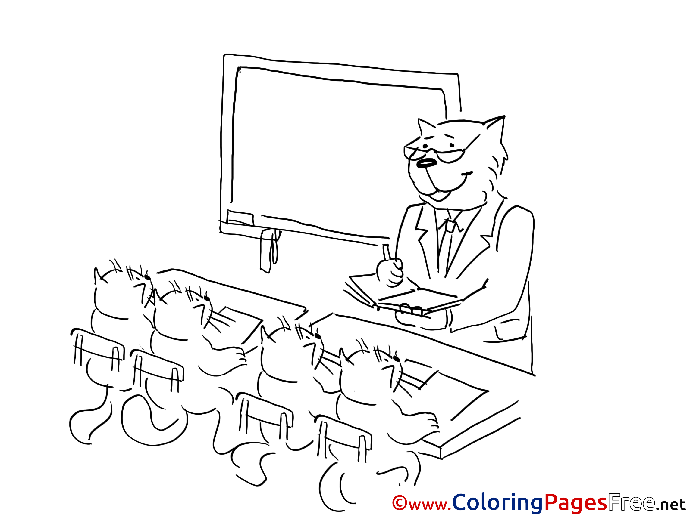 Title of Coloring Sheet: Cat School for Children free Coloring Pages