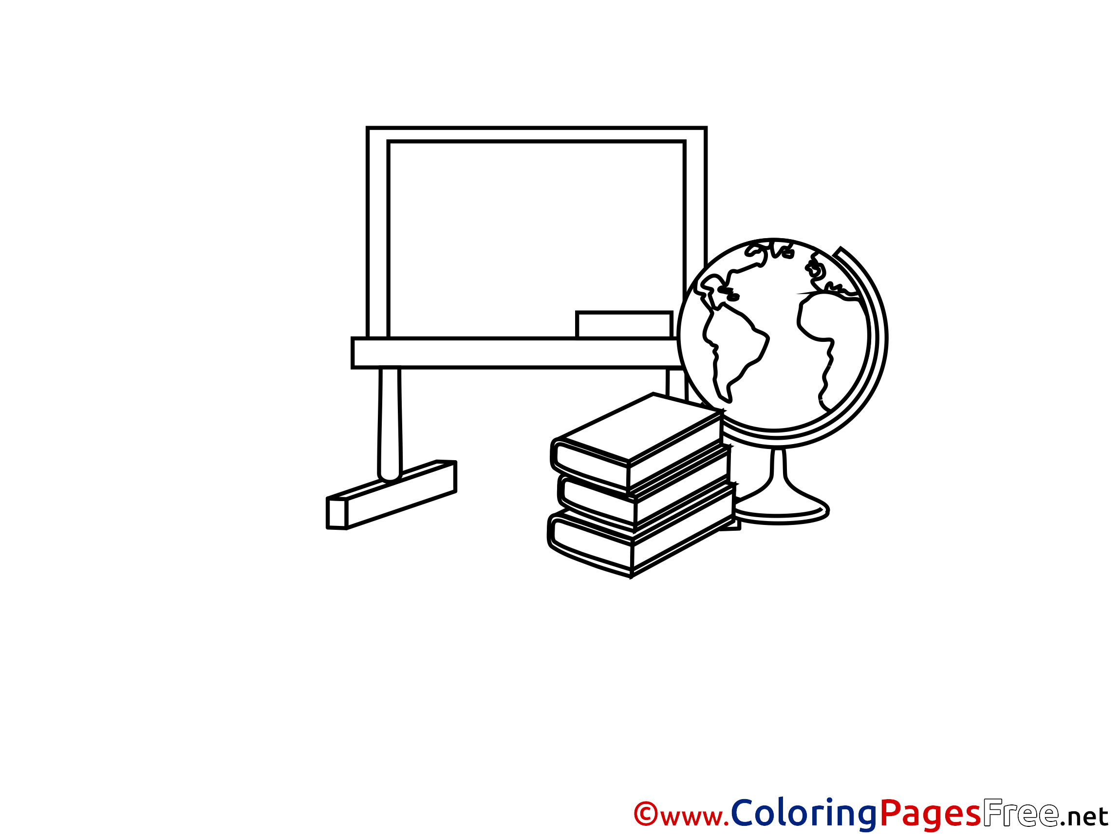 Title of Coloring Sheet: Globe Blackoard Books School Coloring Sheets free