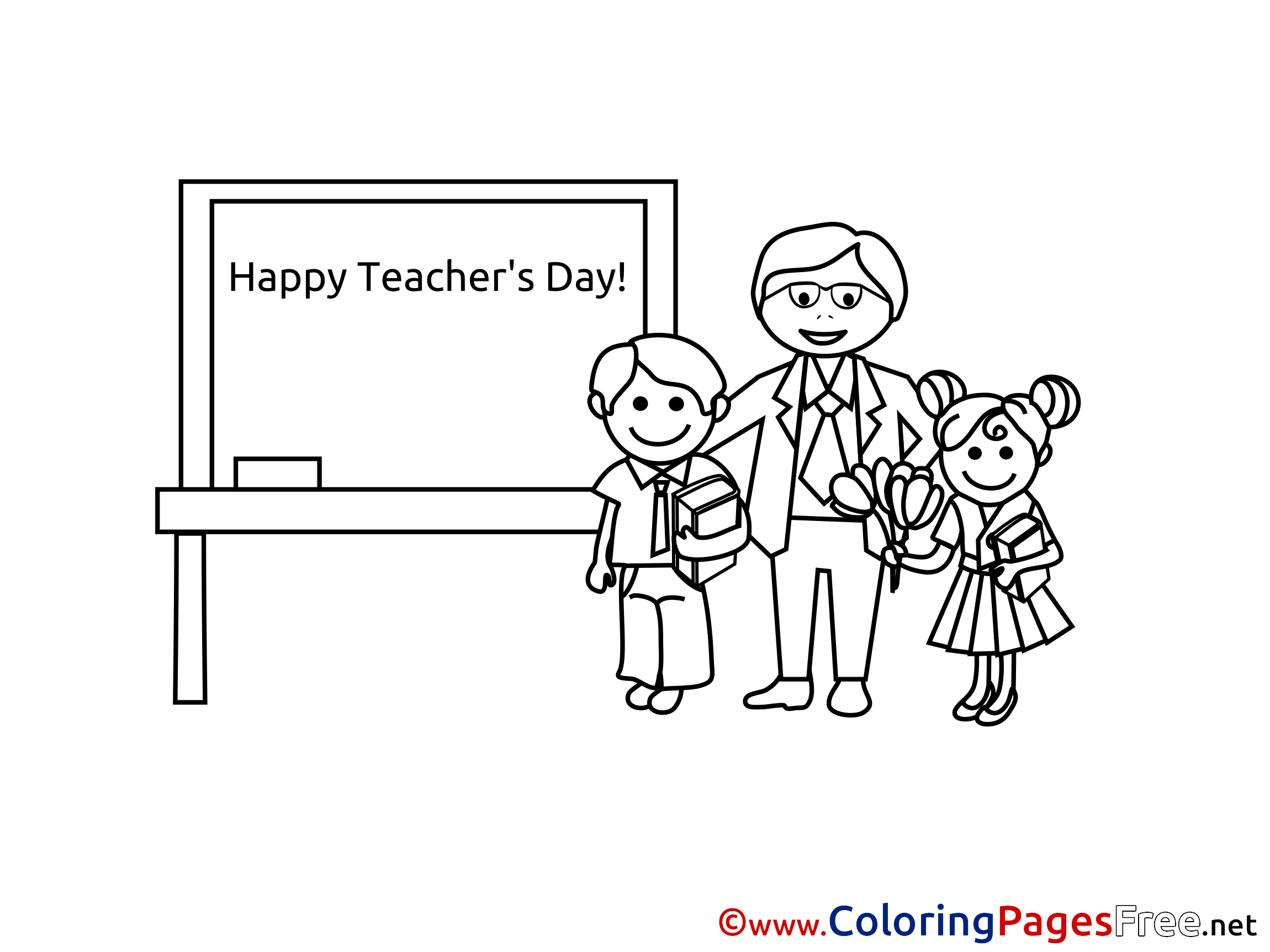 Title of Coloring Sheet: Happy Teacher's Day School Colouring Page printable free