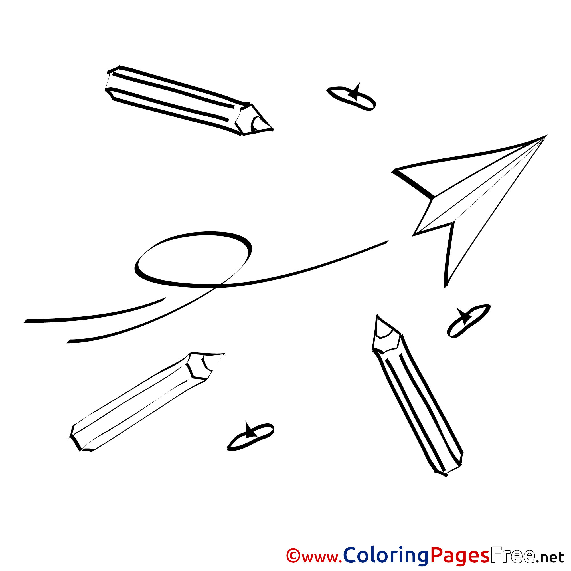Title of Coloring Sheet: Plane Paper Pencils for Kids printable Colouring Page