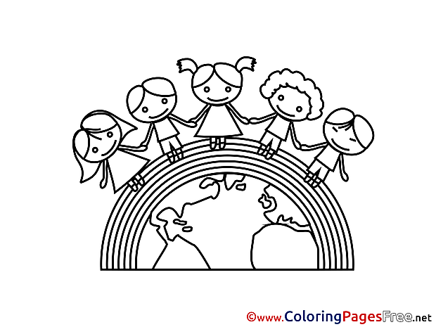 Title of Coloring Sheet: Rainbow Kids Earth download Colouring Sheet free