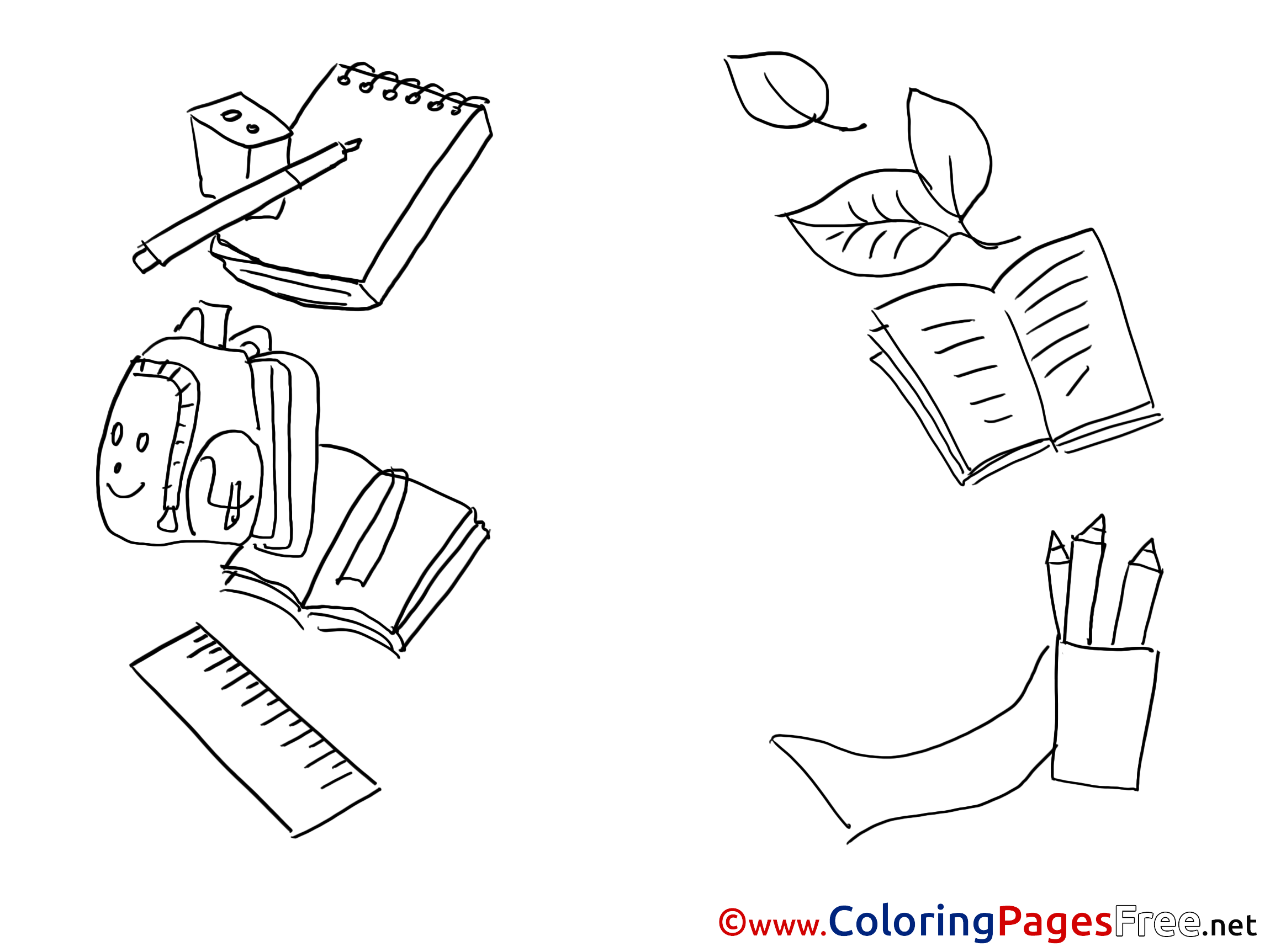 Title of Coloring Sheet: Supplies School for Kids printable Colouring Page