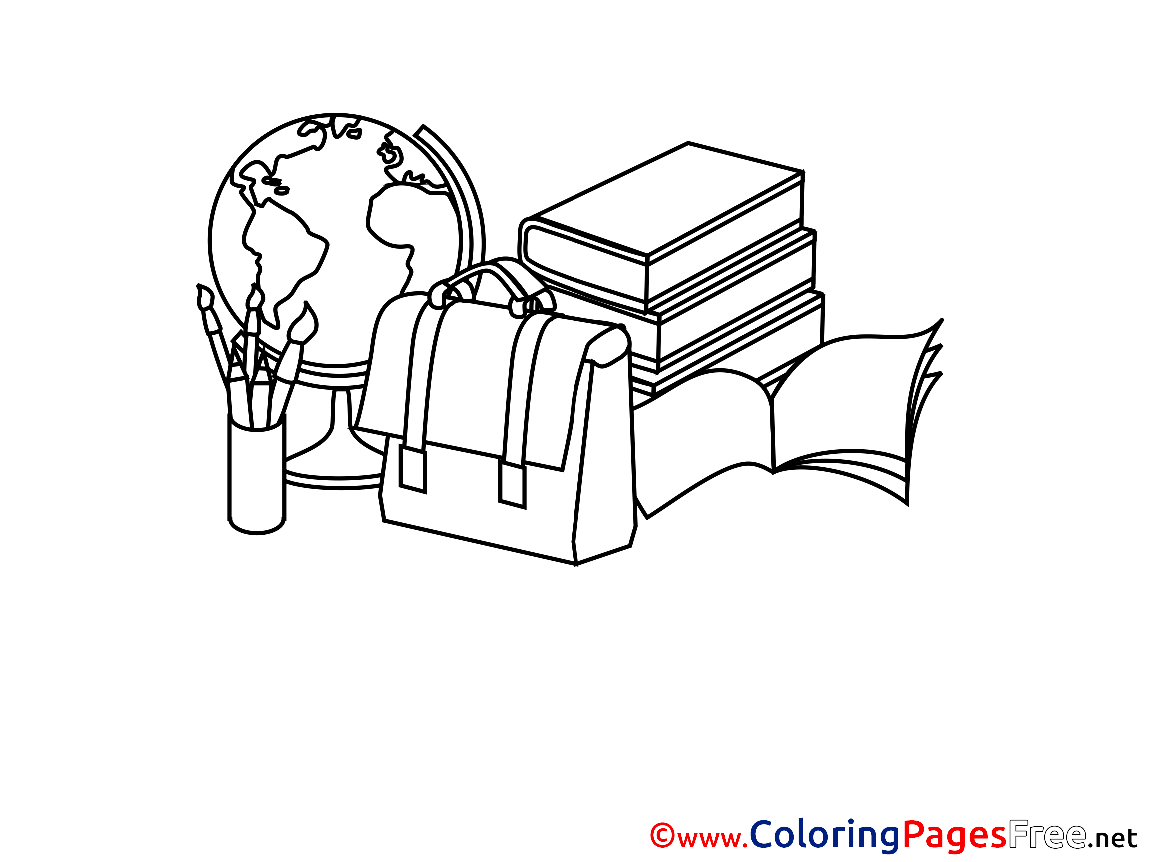 Title of Coloring Sheet: Supplies School Kids download Coloring Pages