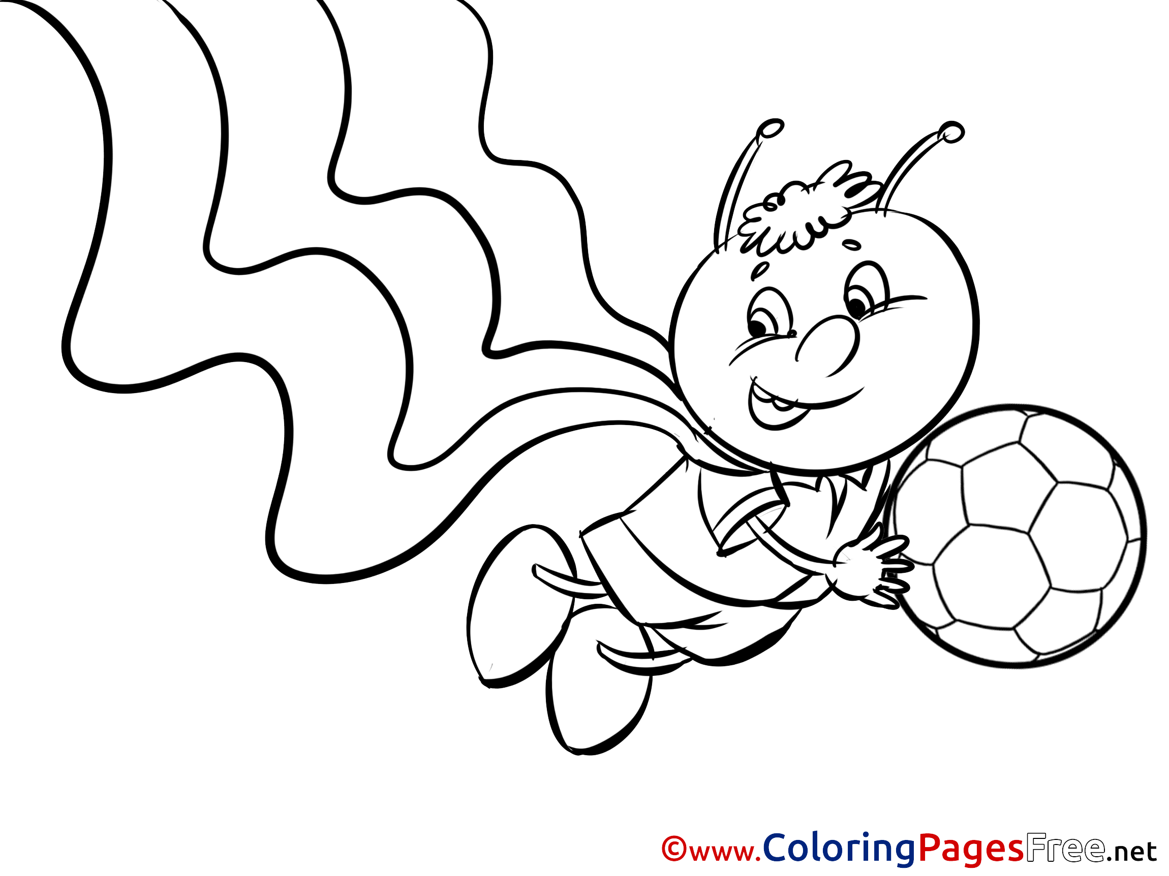 Title of Coloring Sheet: Bee with Ball for Kids Soccer Colouring Page
