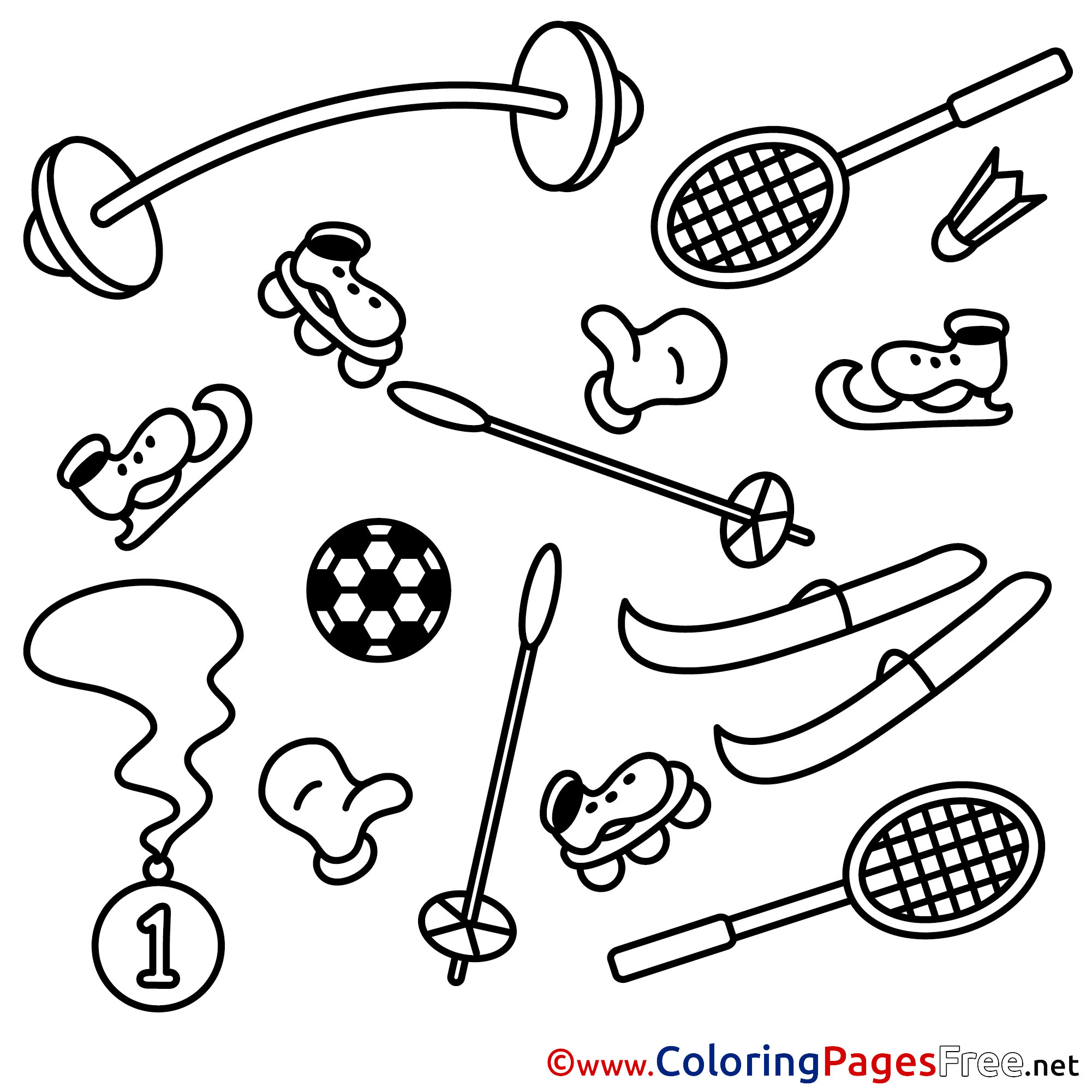 Sport Equipment Children download Colouring Page