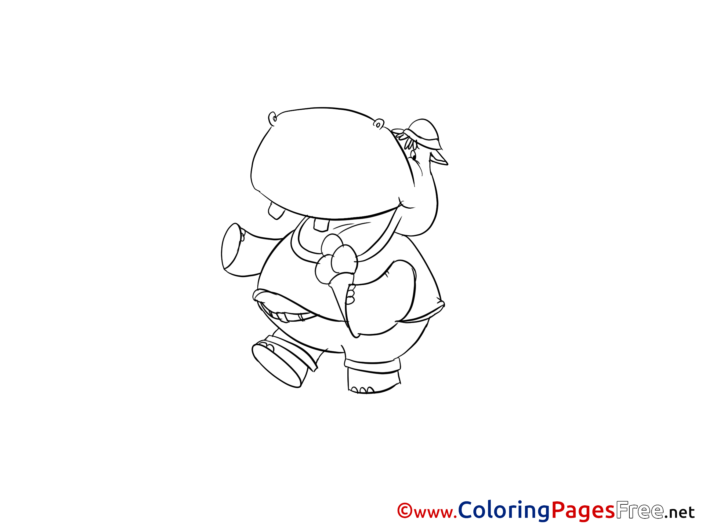 Hippo with Ice Cream printable Summer Coloring Sheets