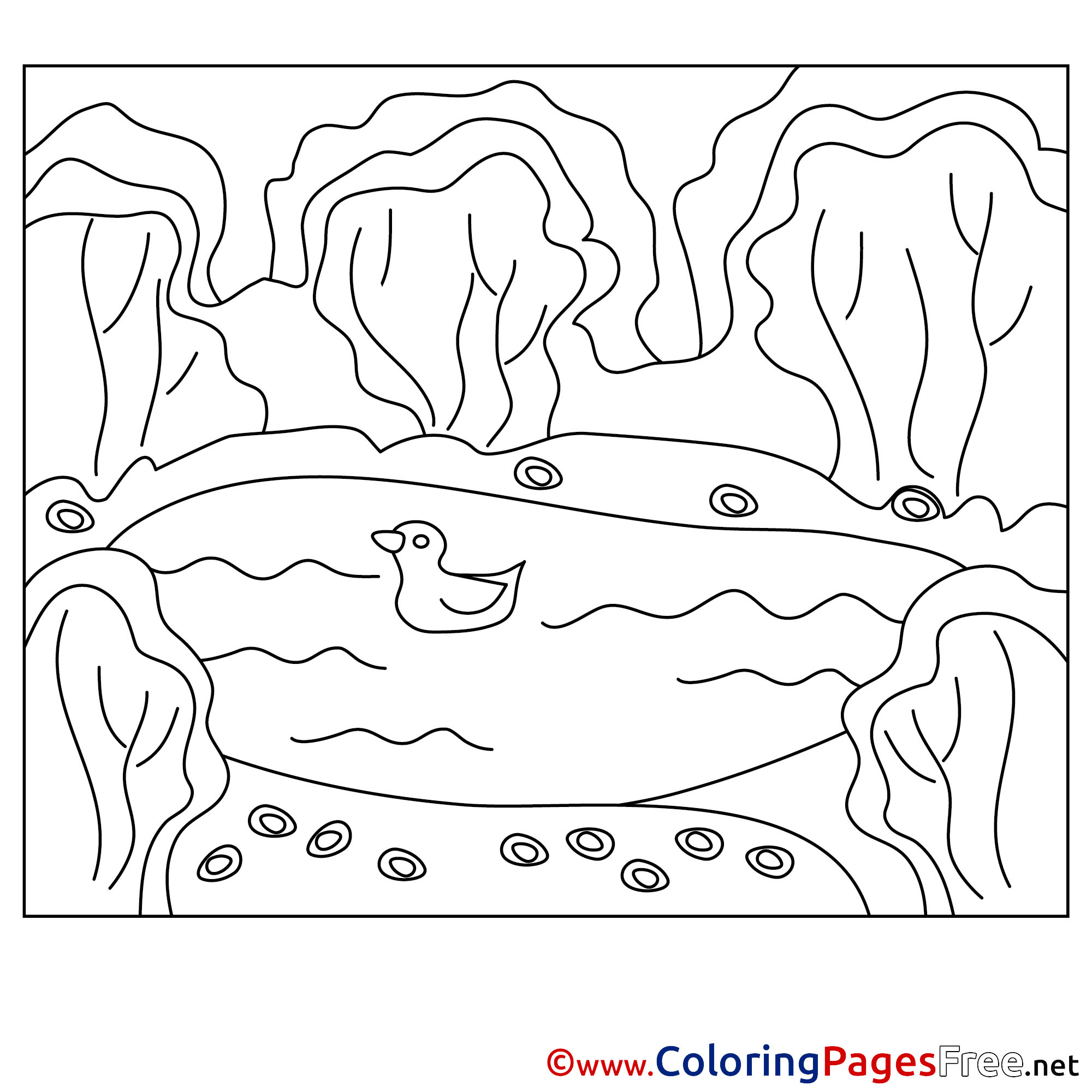 Title of Coloring Sheet: Pond printable Summer Coloring Sheets Duck