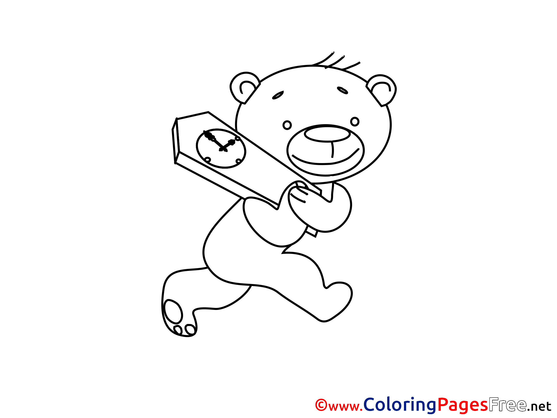 Teddy Bear Coloring Sheets Summer free Clock
