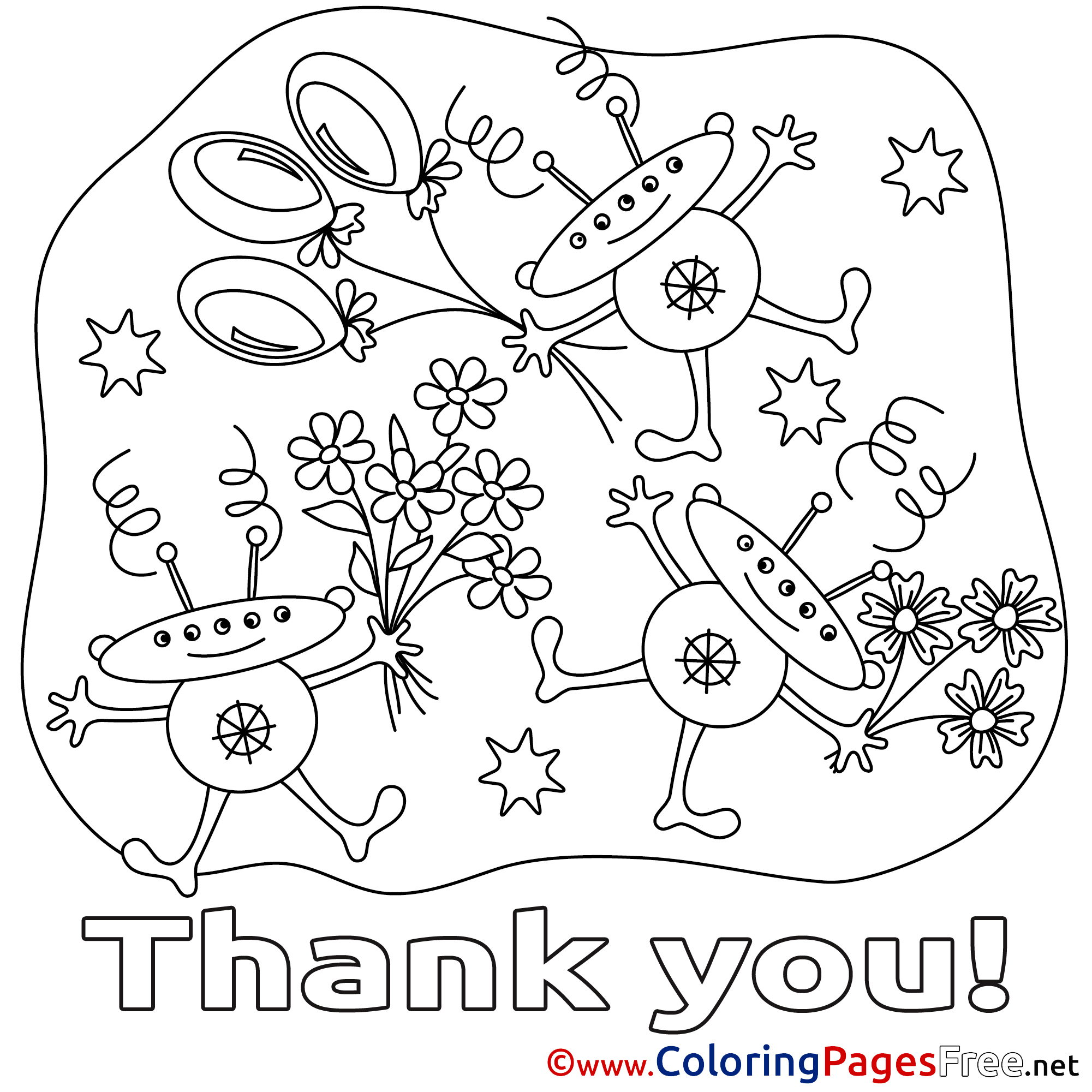 Title of Coloring Sheet: Aliens Flowers Coloring Sheets Thank You free