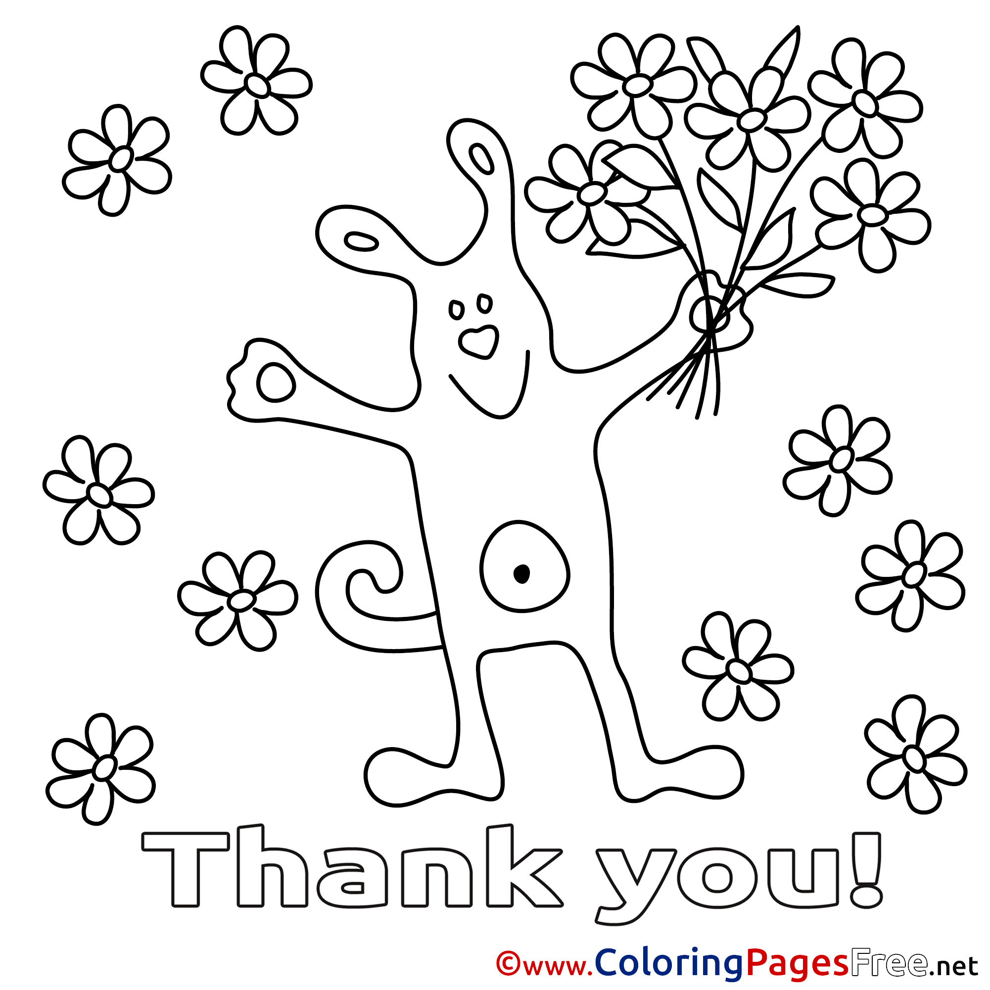 Bouquet Dog Coloring Pages Thank You for free