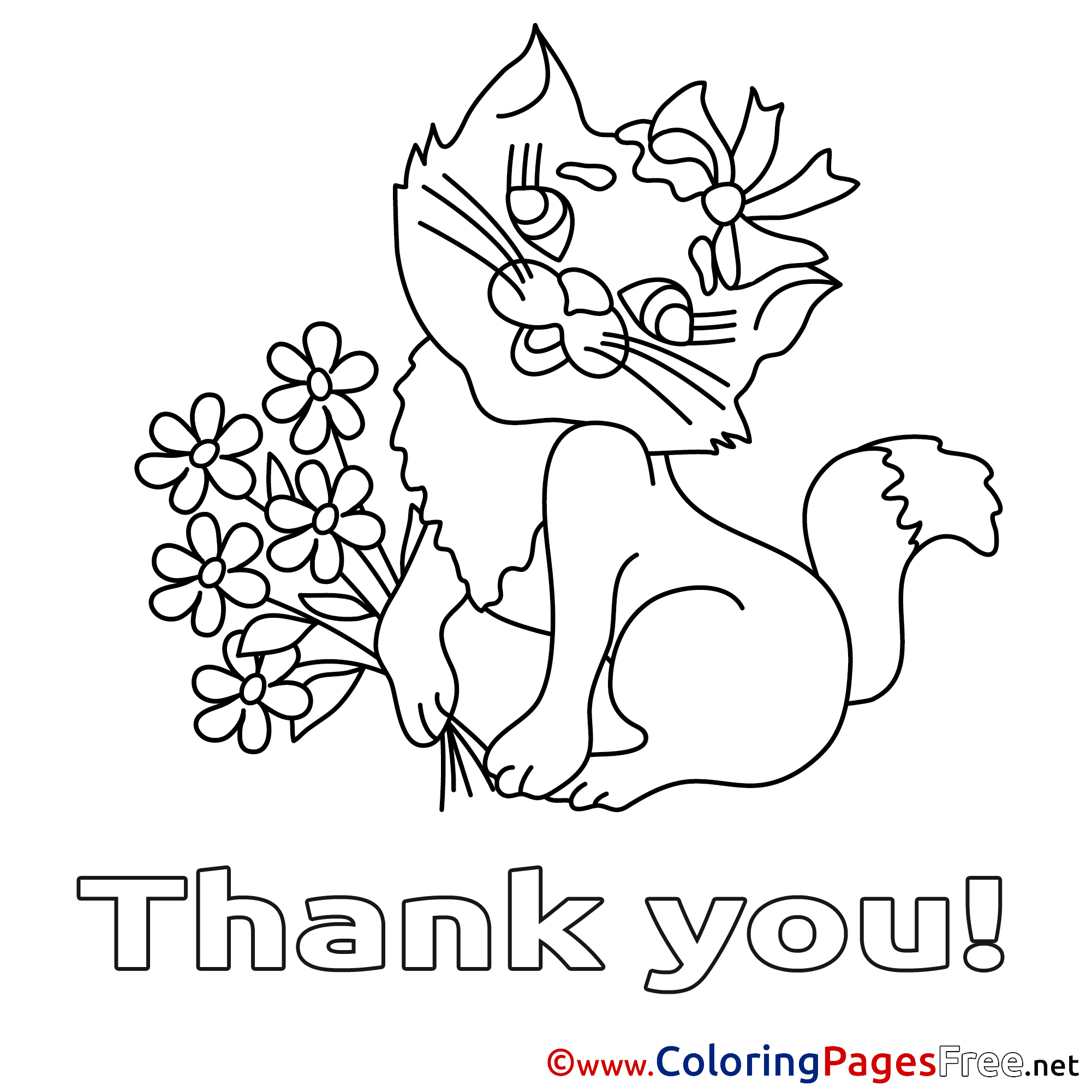 Cat Flowers Thank You Coloring Pages free