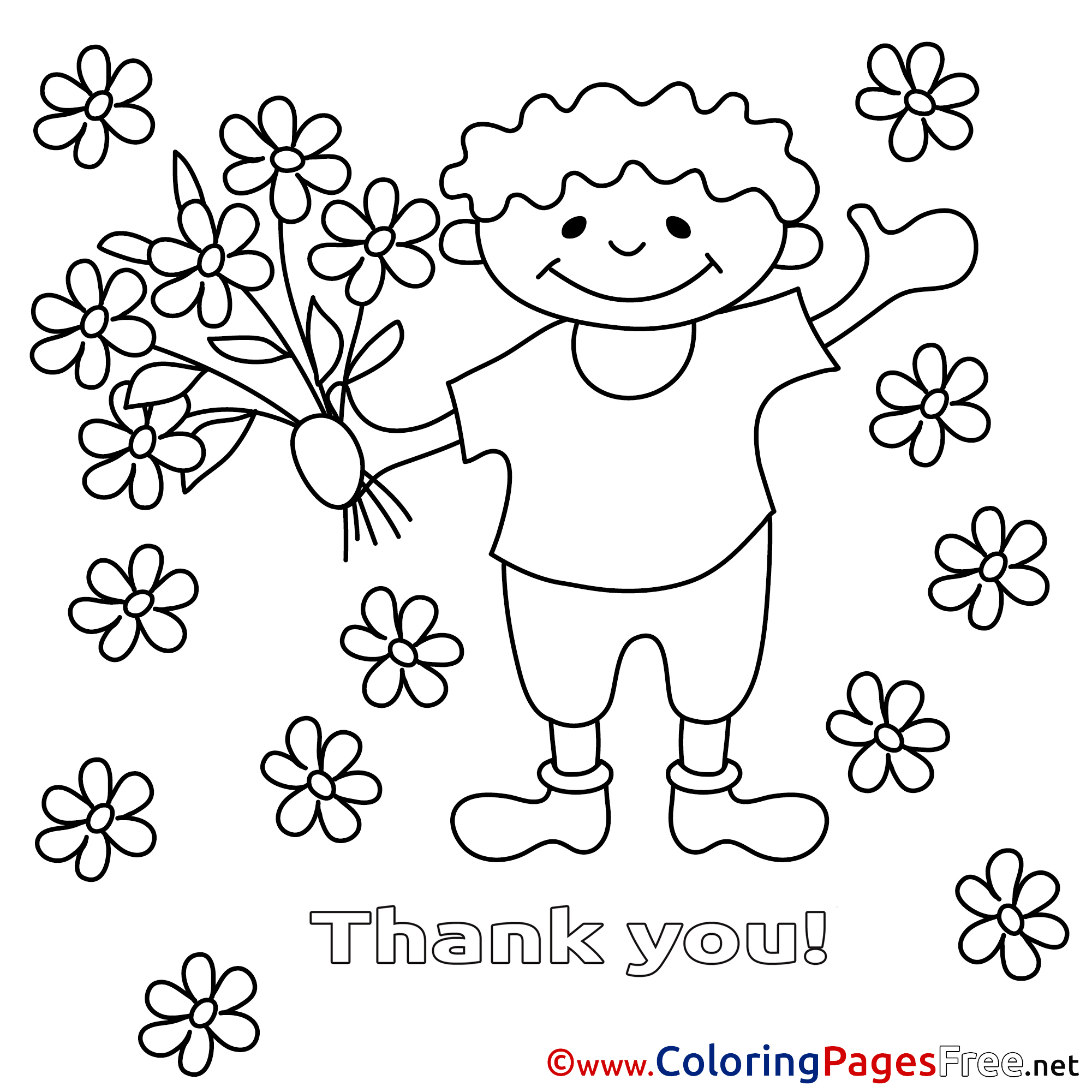 Title of Coloring Sheet: Child Colouring Page Flowers Thank You free
