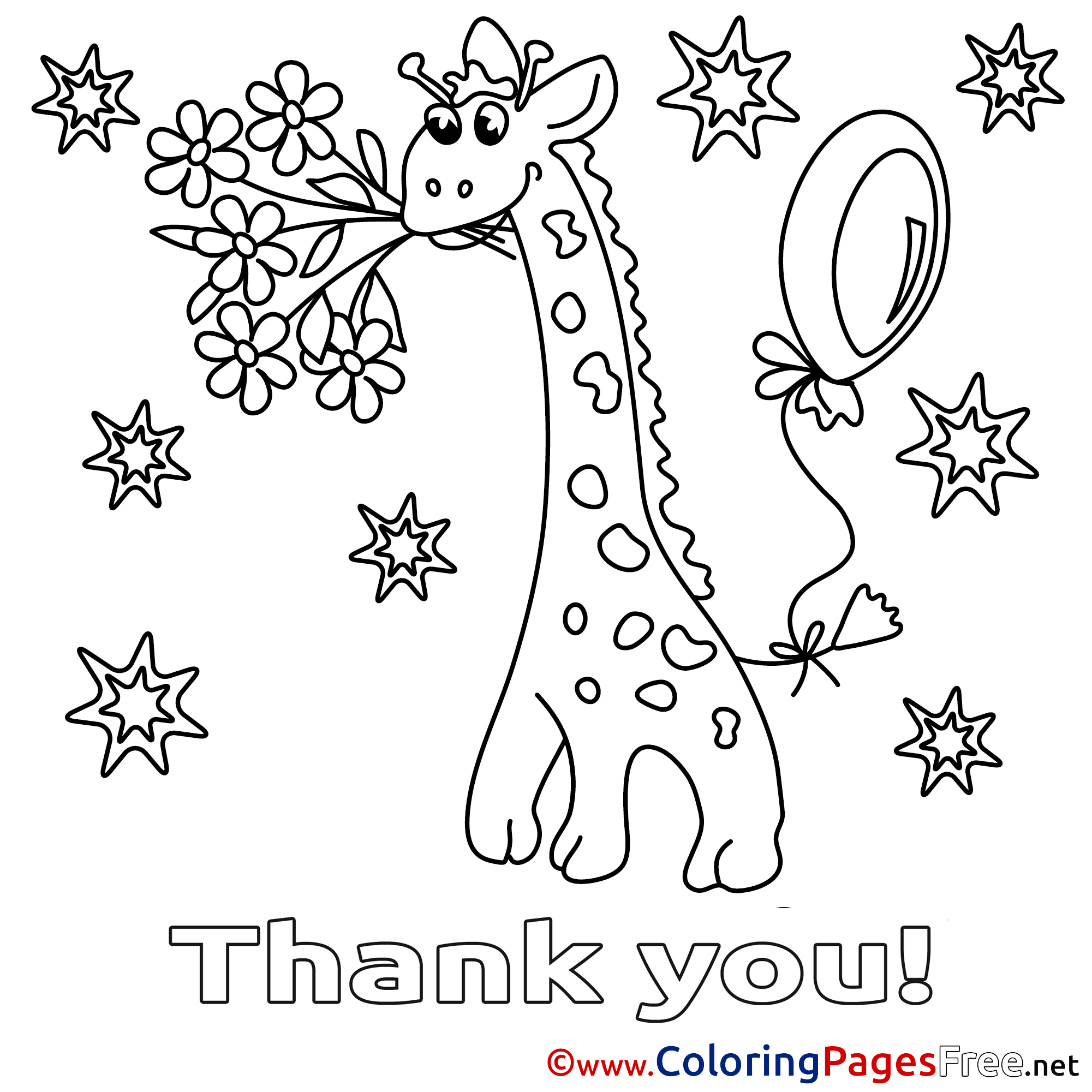 Title of Coloring Sheet: Stars Giraffe for Kids Thank You Colouring Page