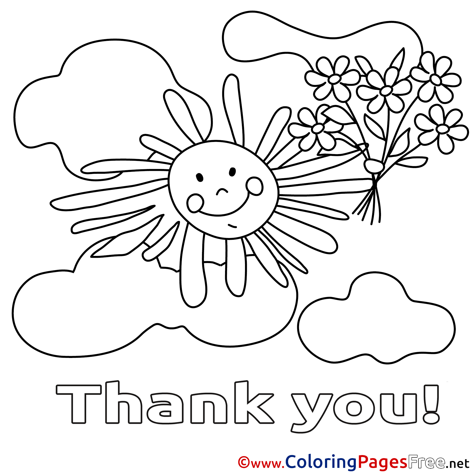 Title of Coloring Sheet: Sun Clouds for Kids Thank You Colouring Page