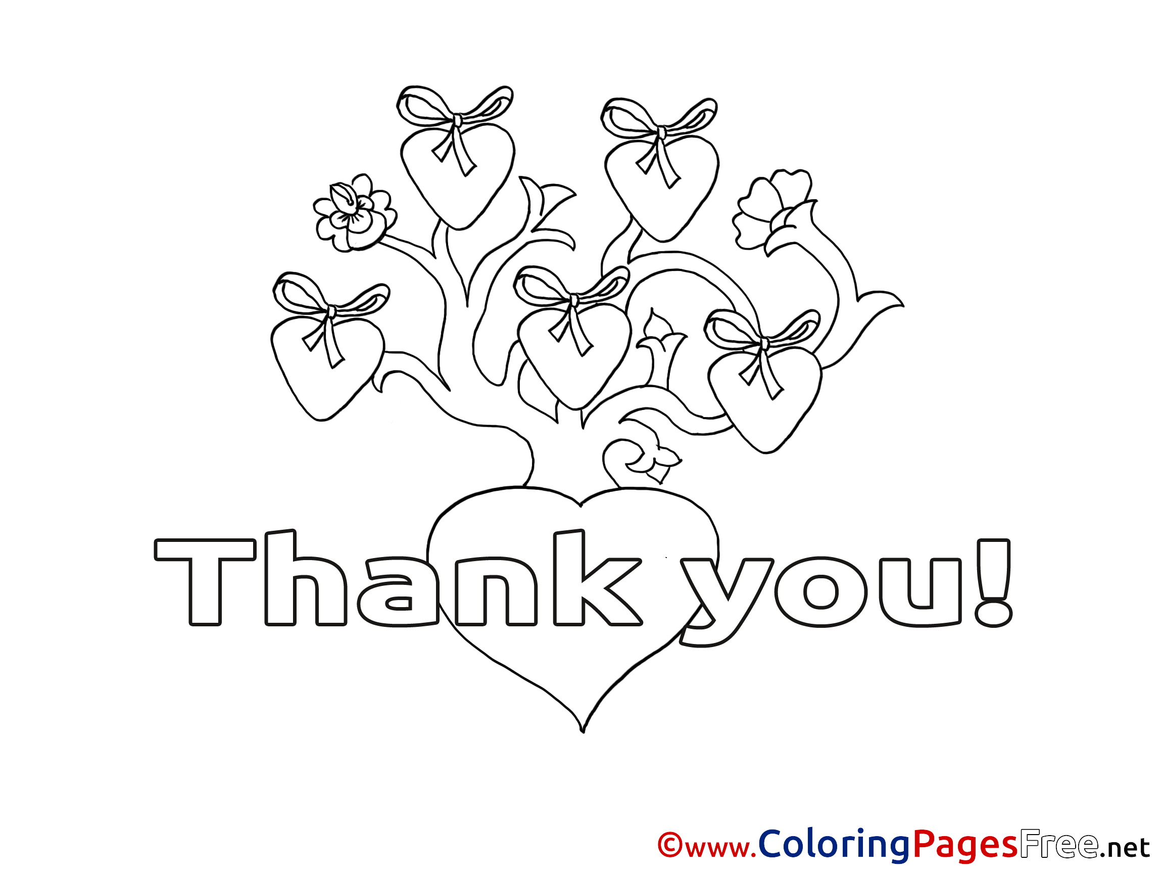 Tree Hearts Kids Thank You Coloring Page