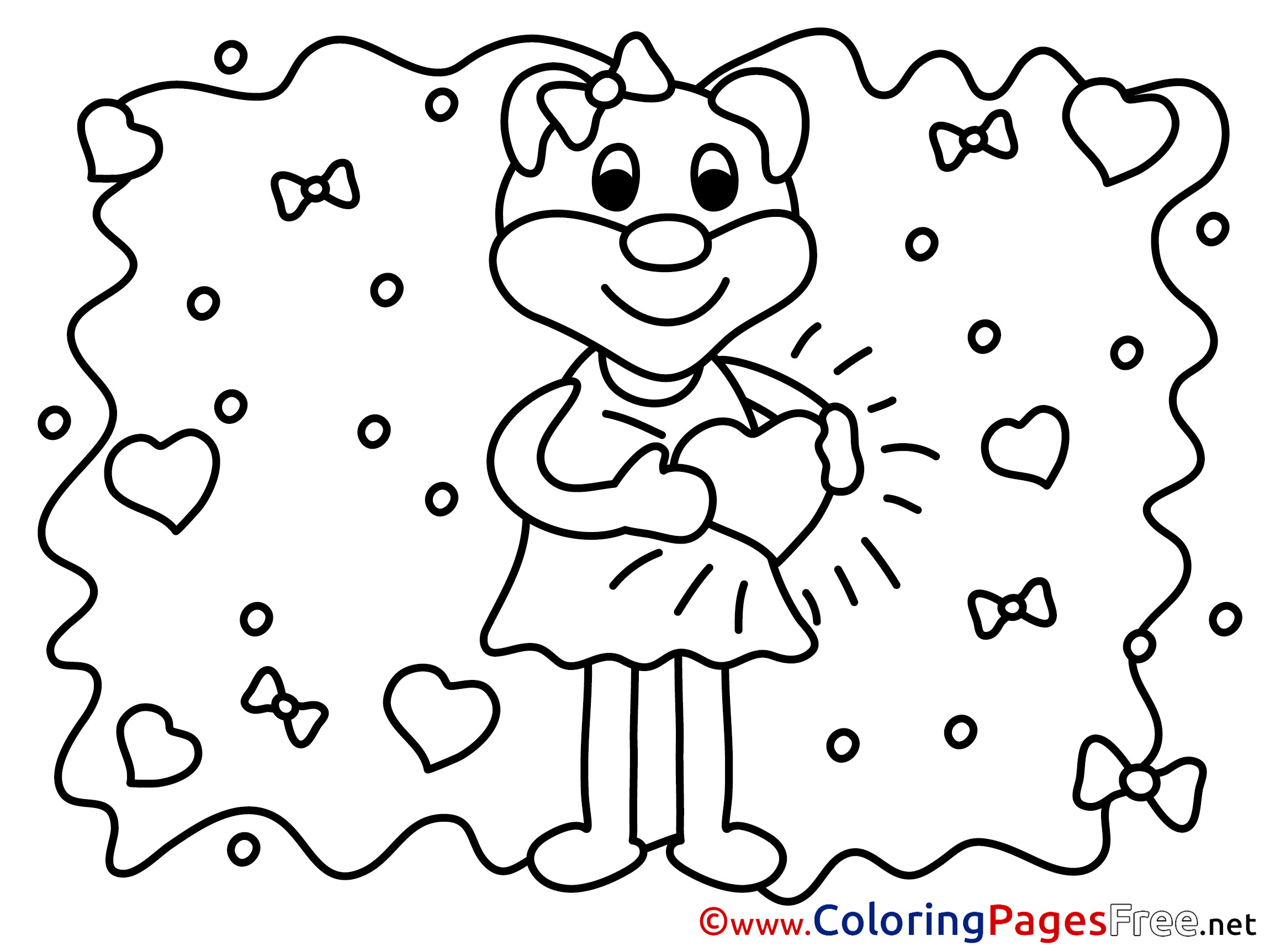 Animal Bear Kids Valentine's Day Love Coloring Page