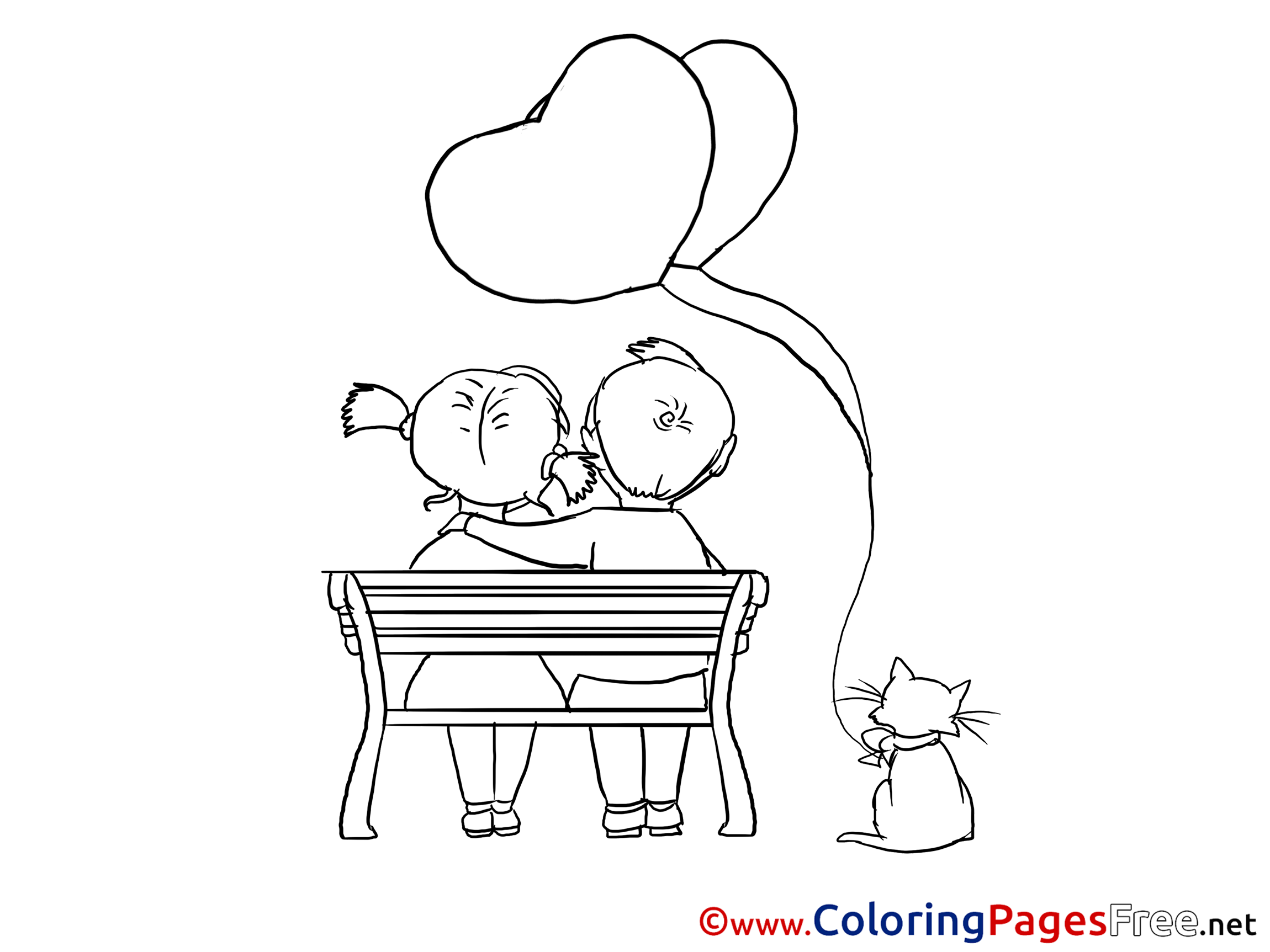 Bench Love for Kids Valentine's Day Colouring Page