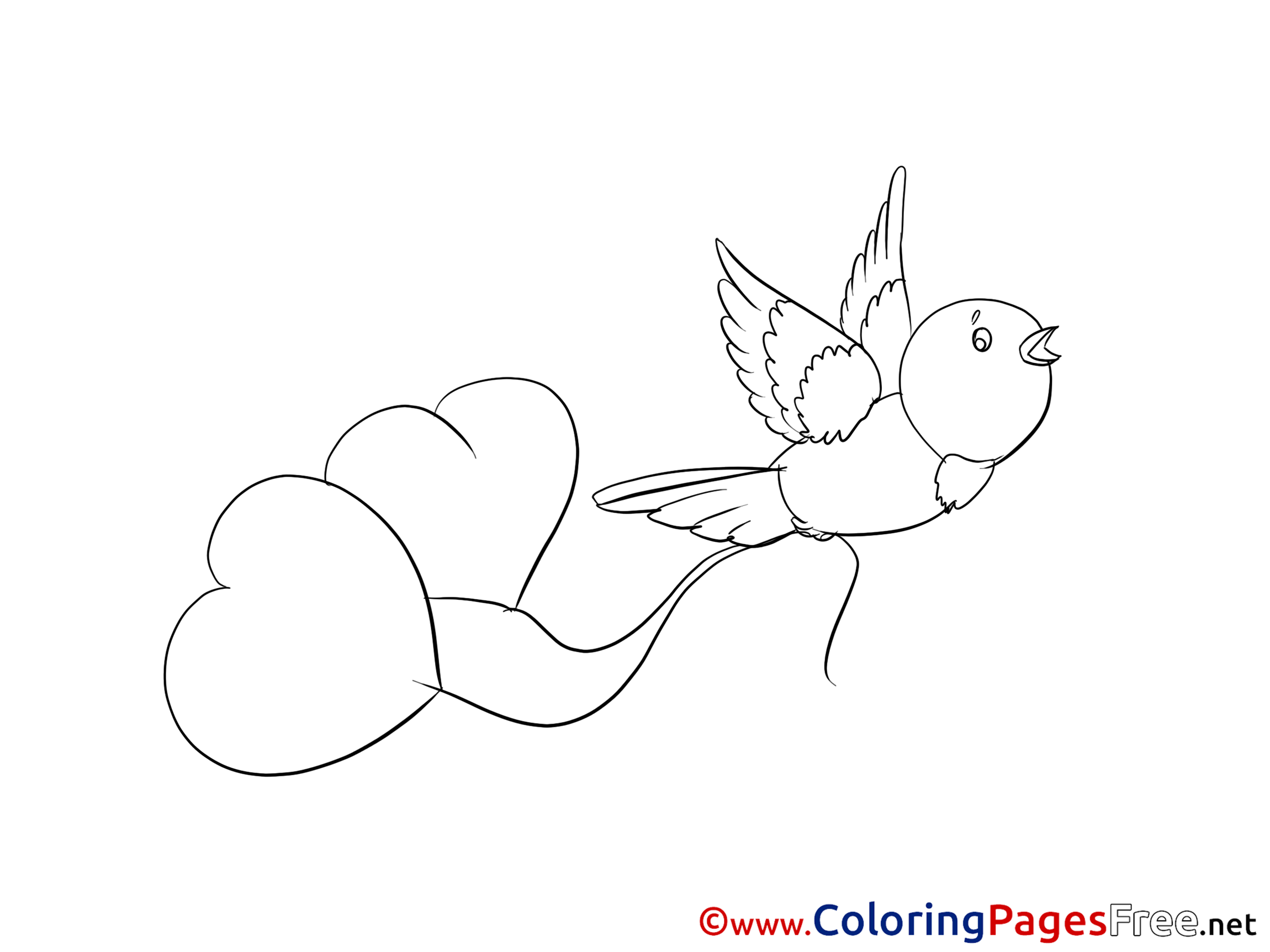 Title of Coloring Sheet: Bird Hearts Kids Valentine's Day Coloring Page