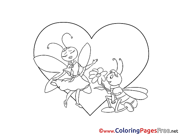 Title of Coloring Sheet: Bugs Love free Colouring Page Valentine's Day