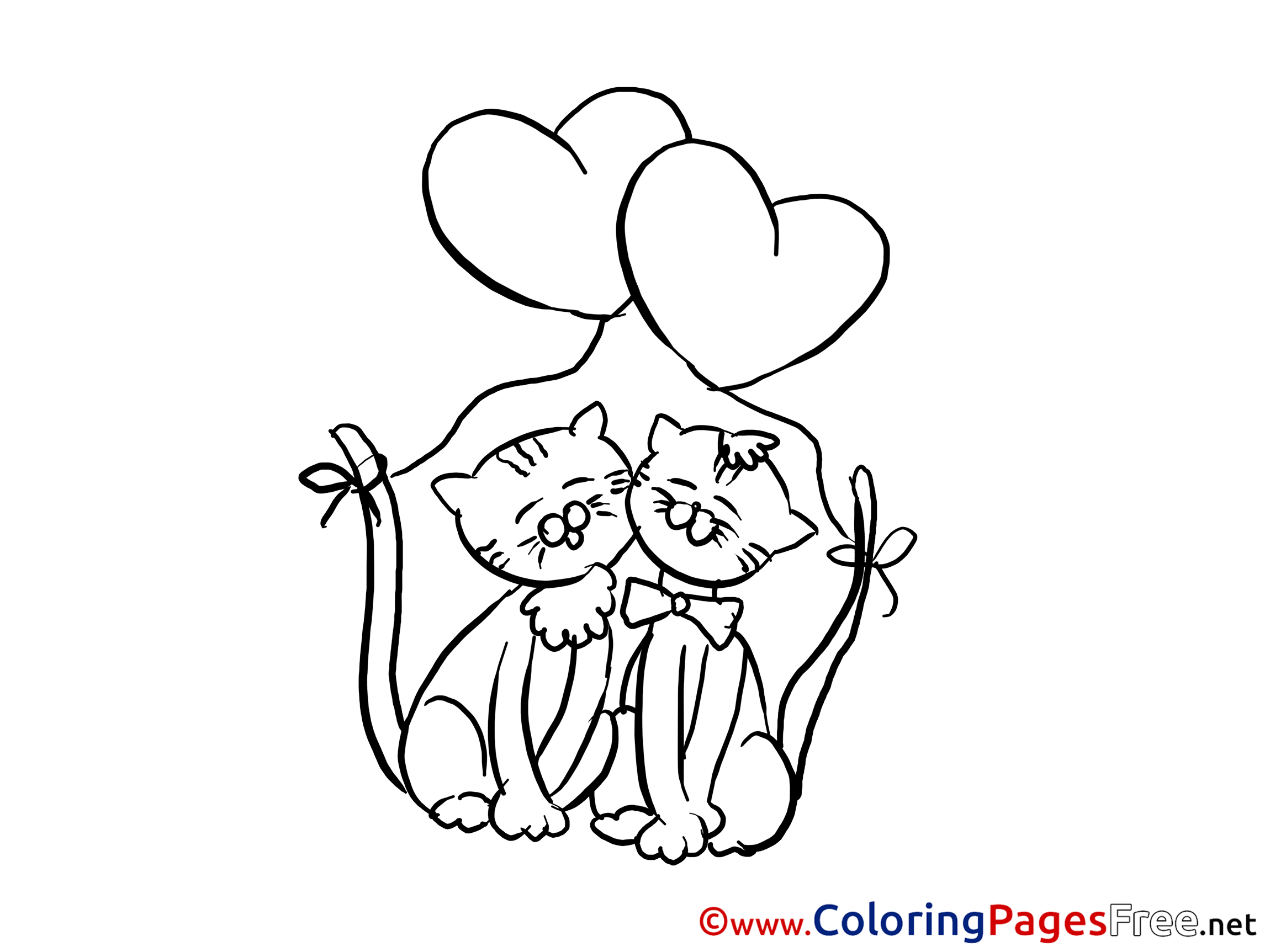 Title of Coloring Sheet: Cats Love printable Coloring Pages Valentine's Day