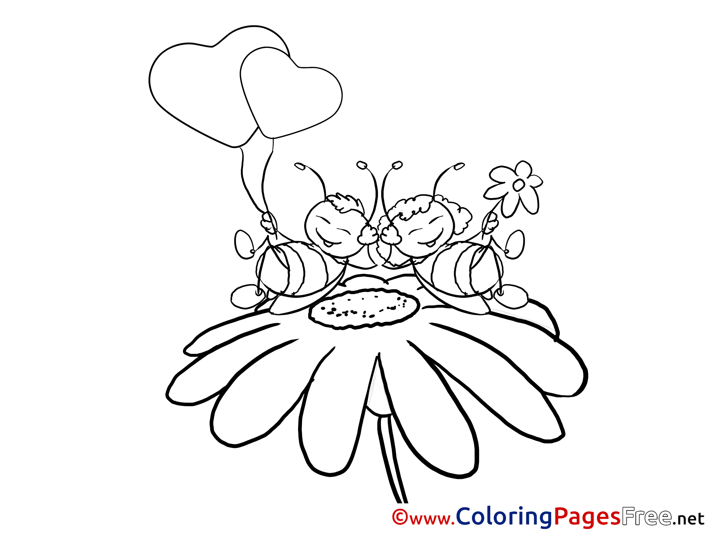 Title of Coloring Sheet: Chamomile Bees Love Valentine's Day Colouring Sheet free