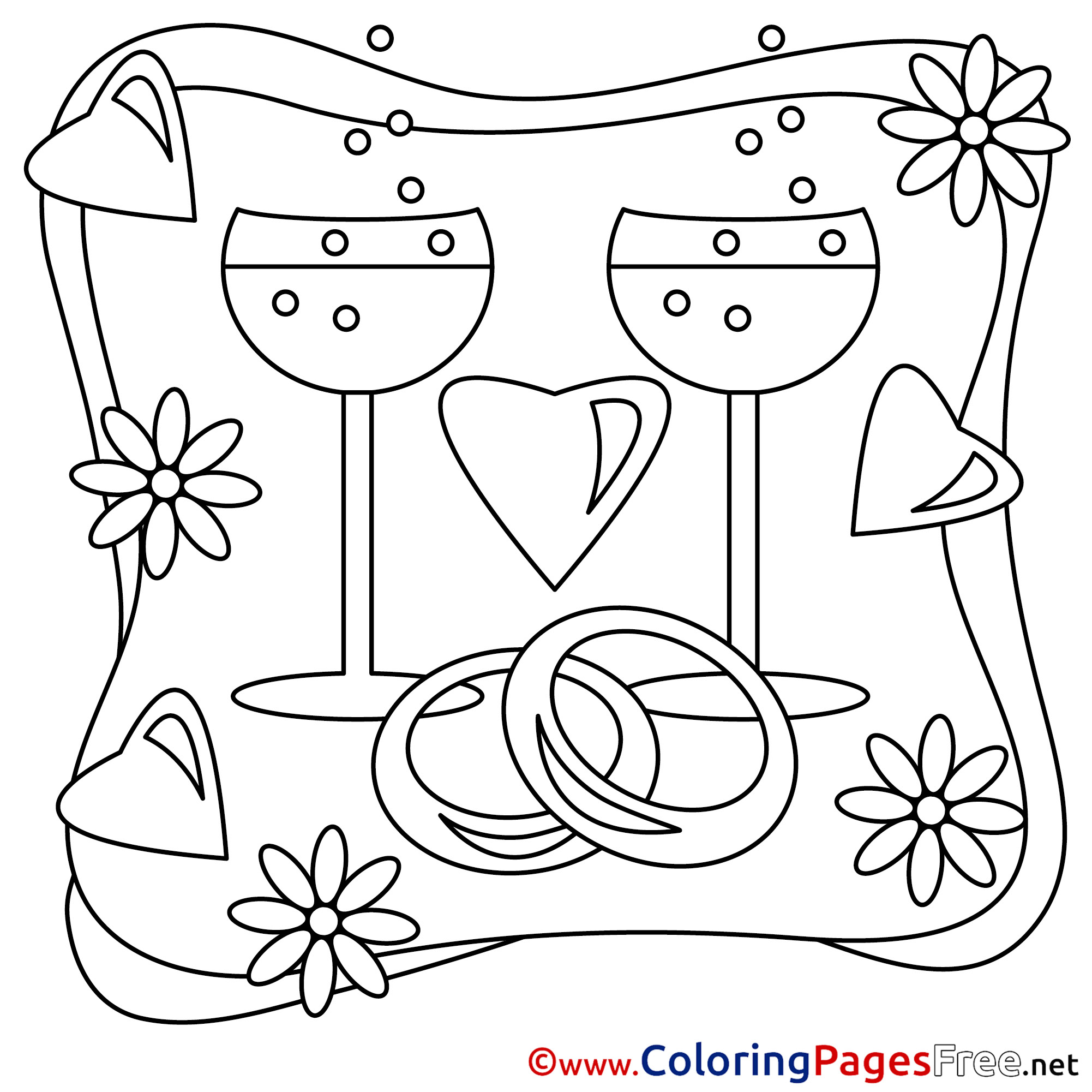 Champagne free Colouring Page Valentine's Day