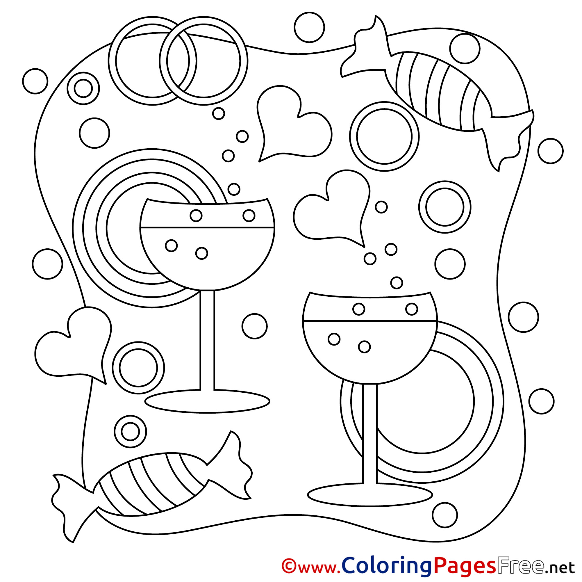 Title of Coloring Sheet: Champagne Kids Valentine's Day Coloring Pages