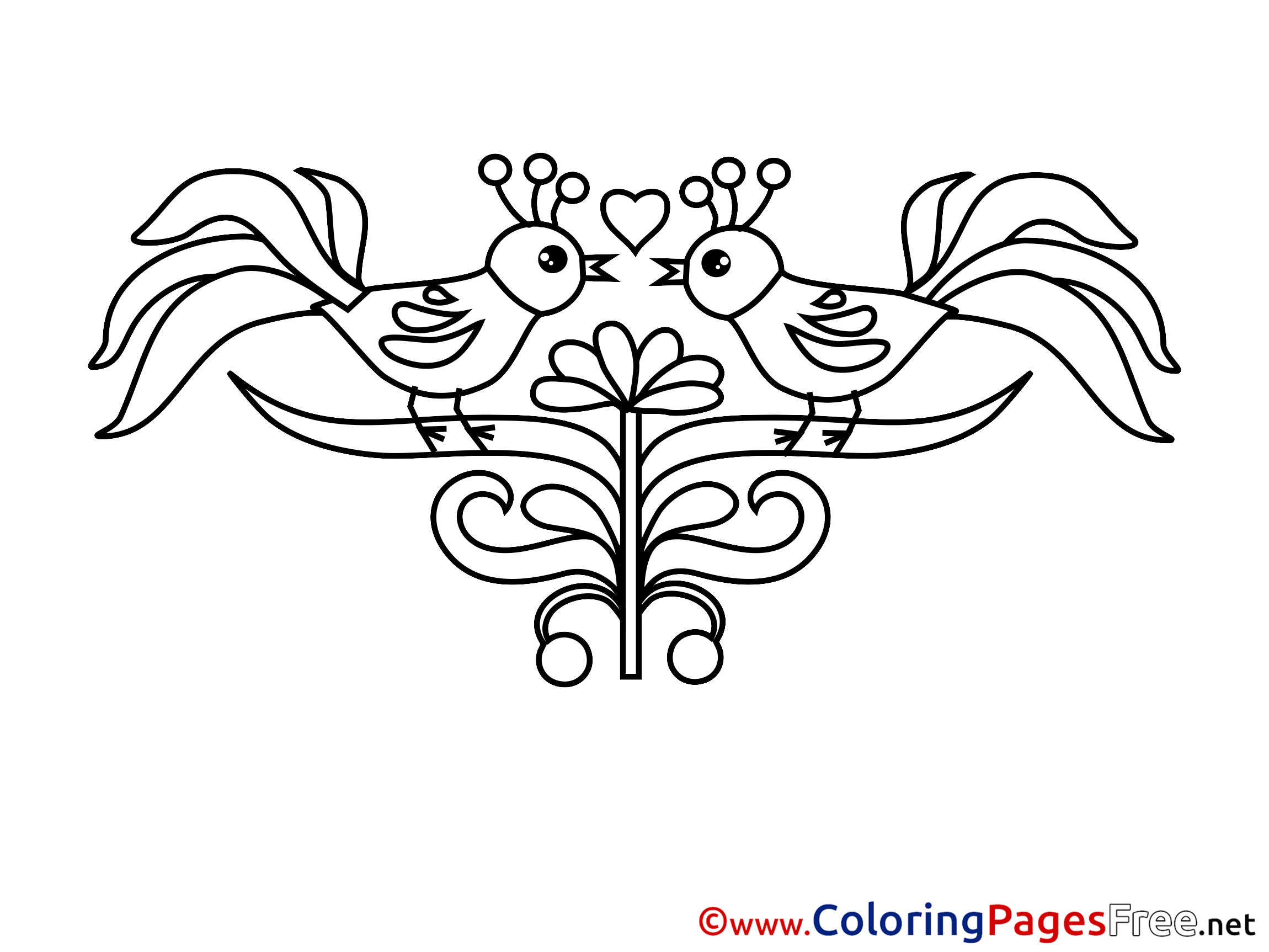 Title of Coloring Sheet: Chickens Colouring Page Valentine's Day free