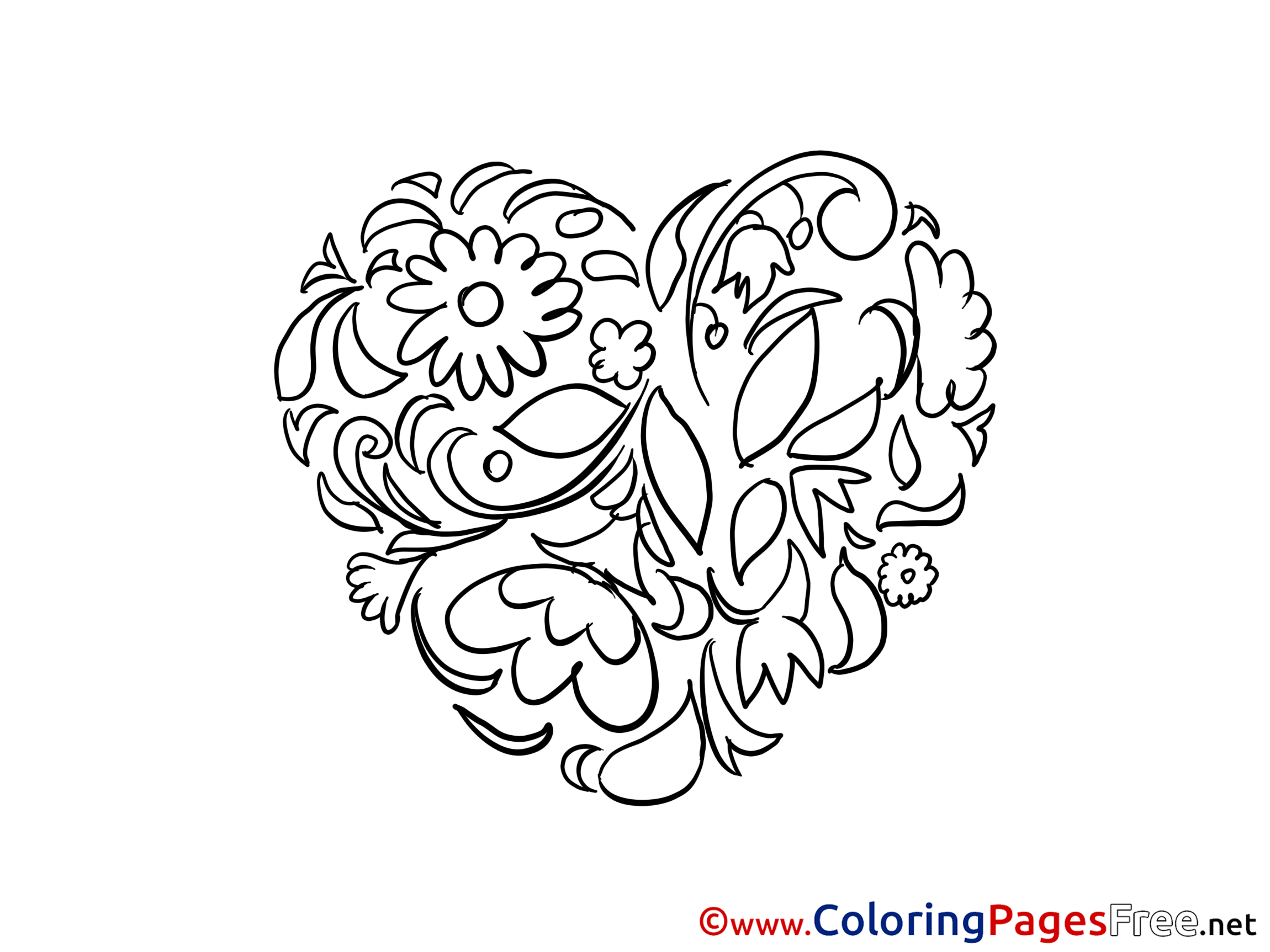 Flowers Heart Coloring Pages Valentine's Day for free
