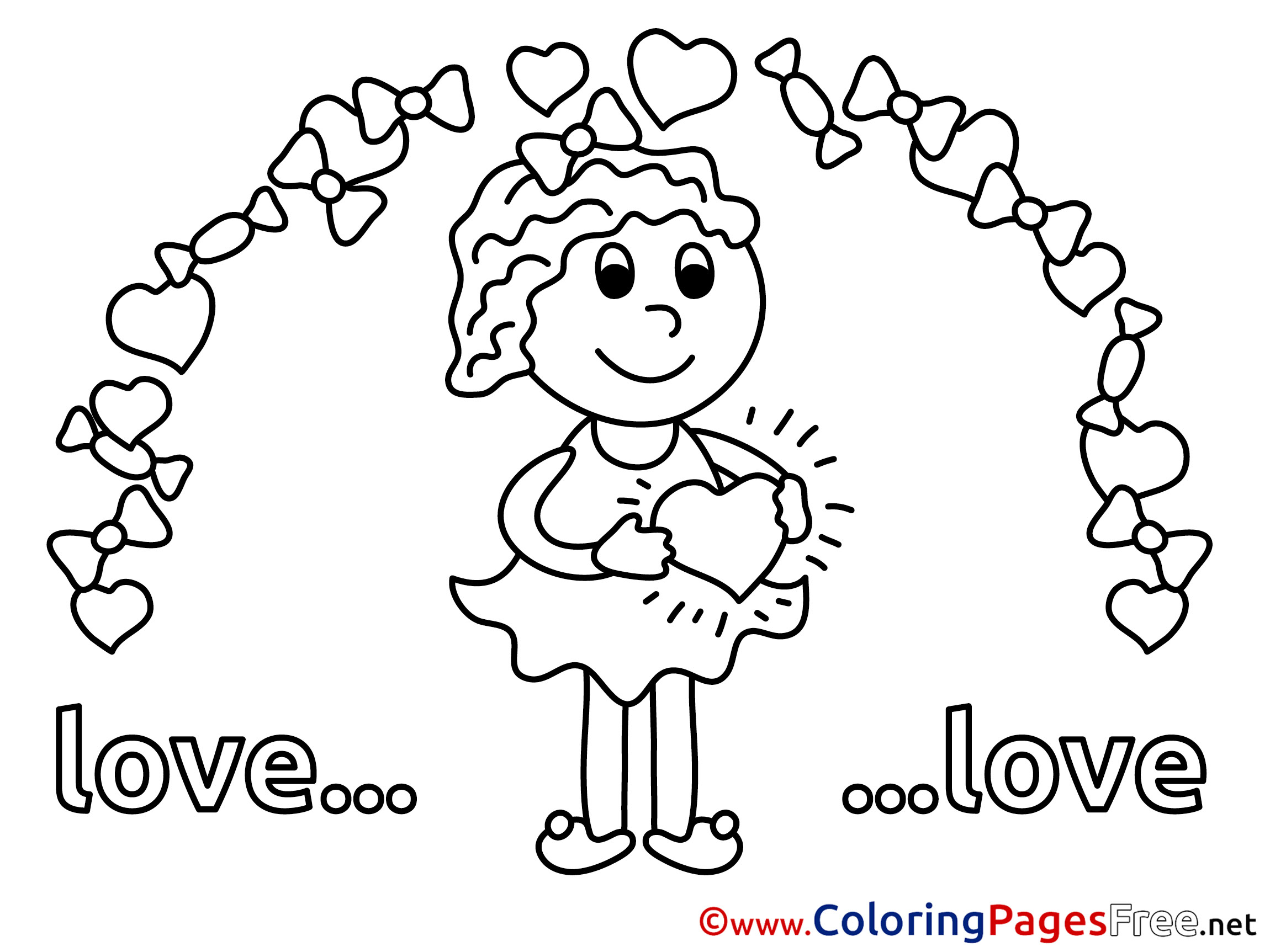 Title of Coloring Sheet: Girl Love Coloring Pages Valentine's Day for free