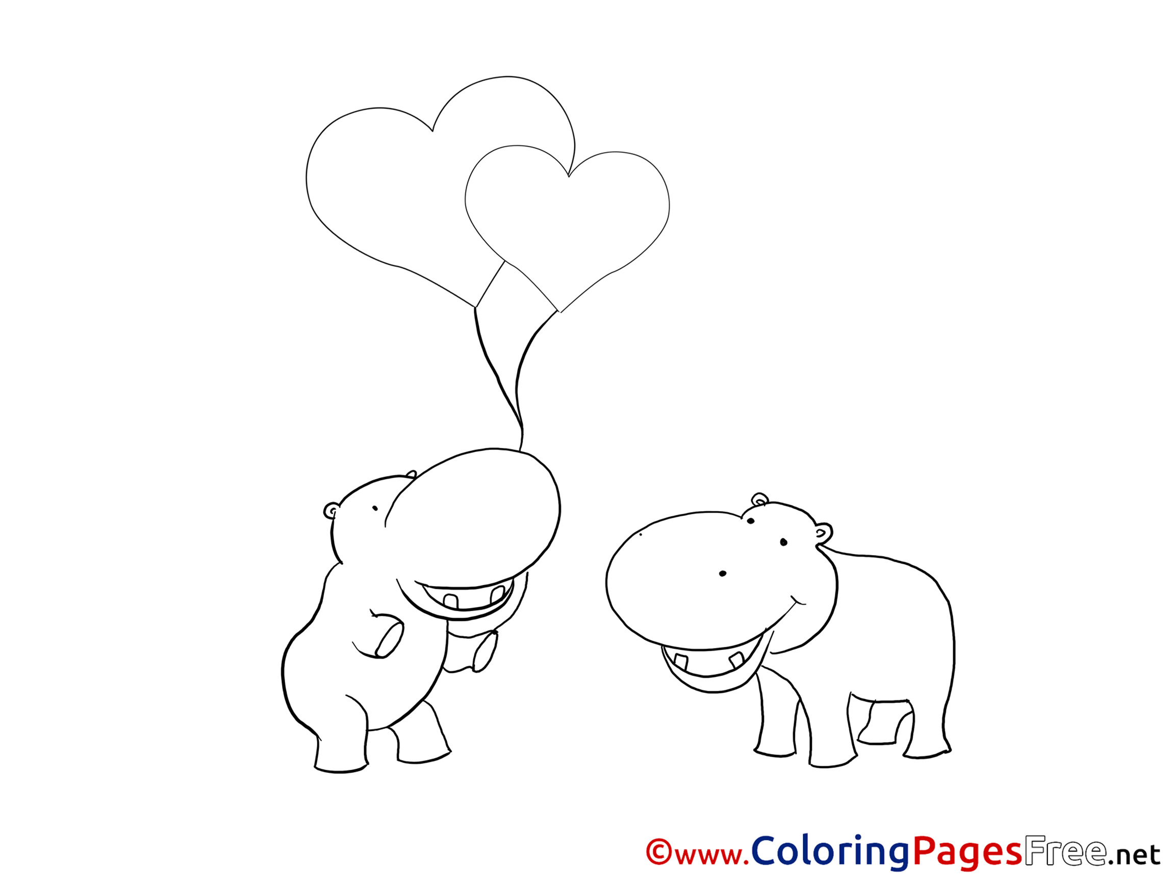 Hippos Balloons Kids Valentine's Day Coloring Pages