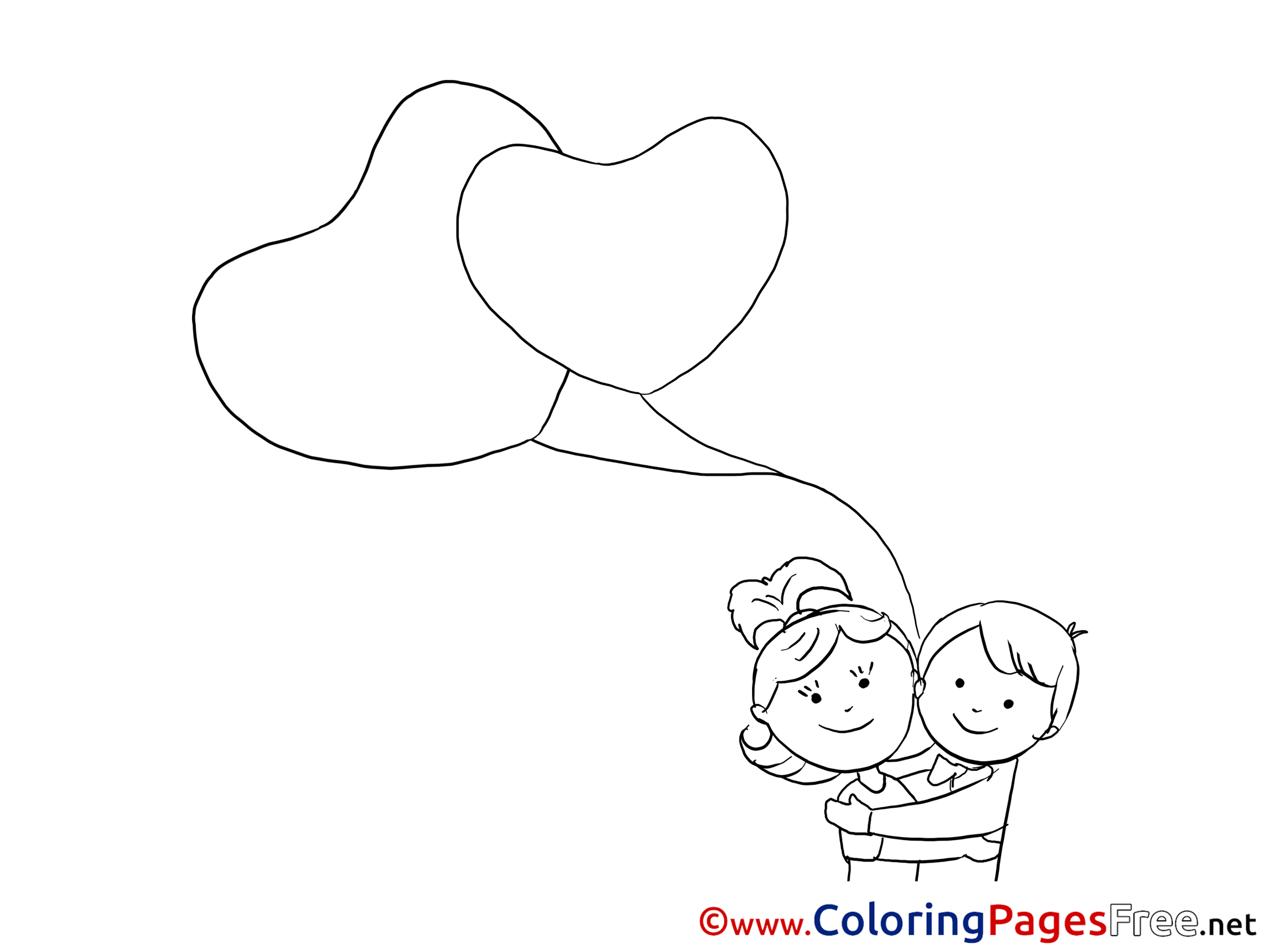 Title of Coloring Sheet: Huging Children Valentine's Day Colouring Page