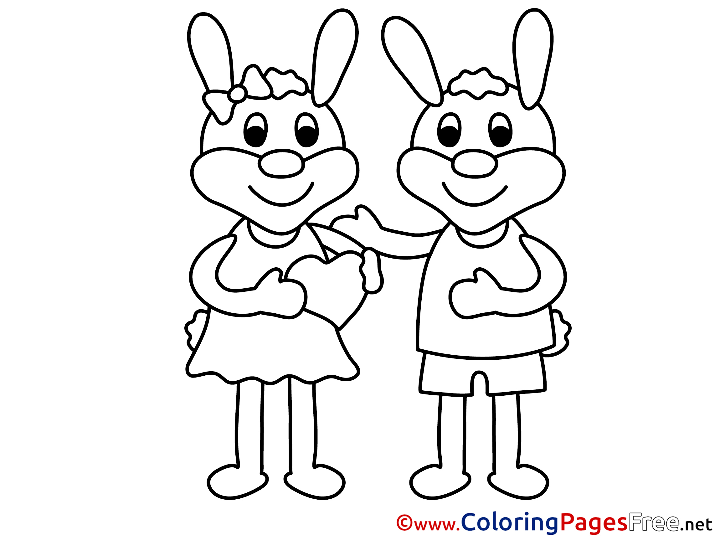 Title of Coloring Sheet: Rabbits Valentine's Day Colouring Sheet free