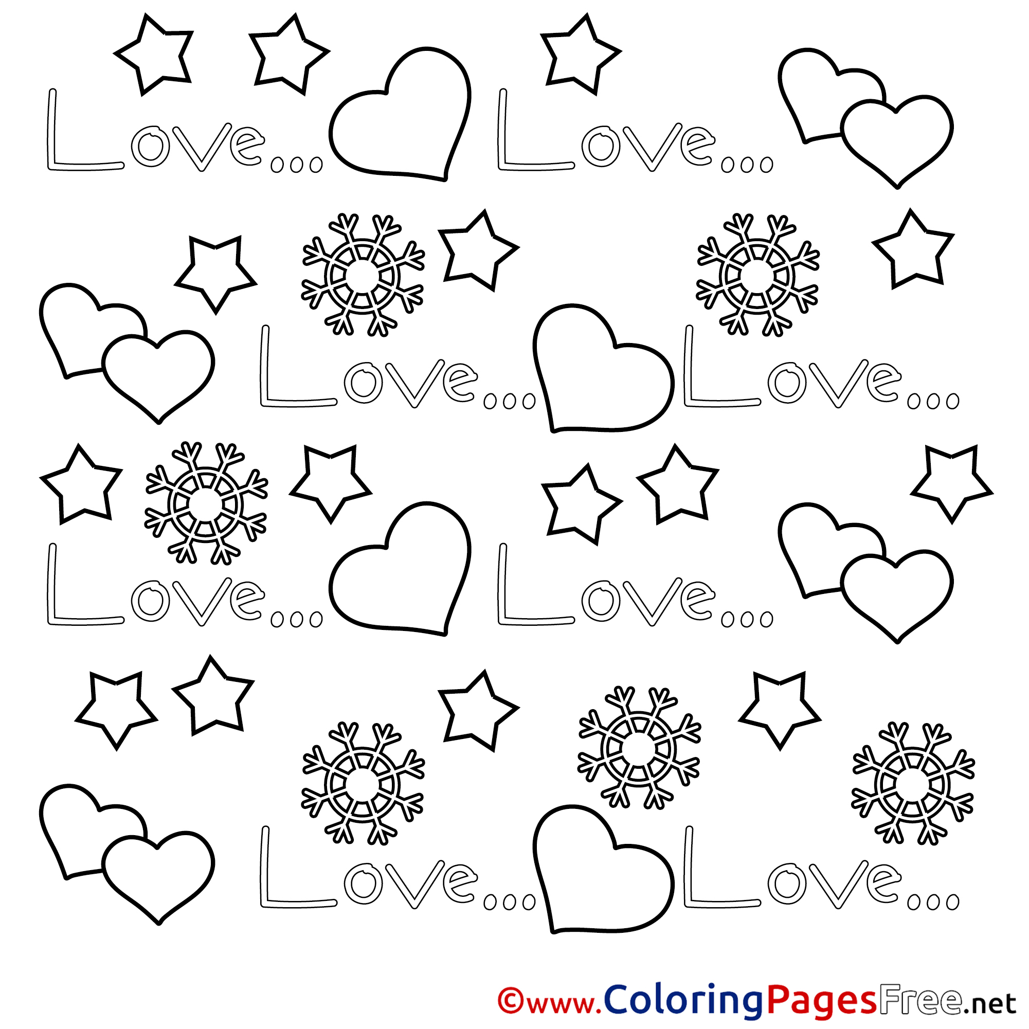 Stars Hearts Colouring Sheet download Valentine's Day