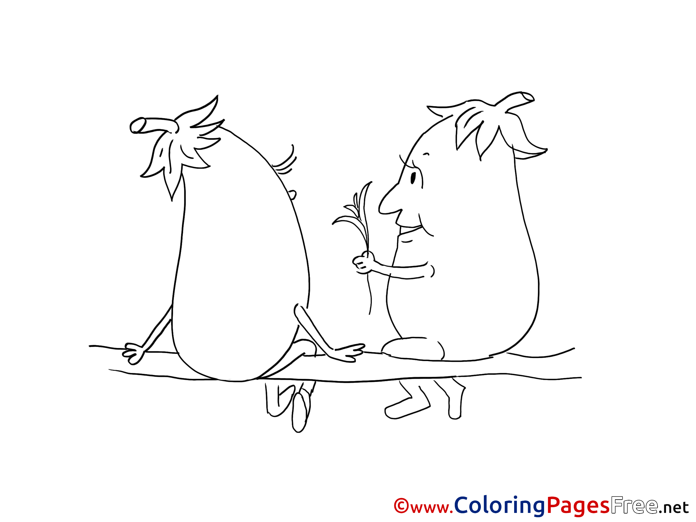 Couple Eggplants Children Coloring Pages free