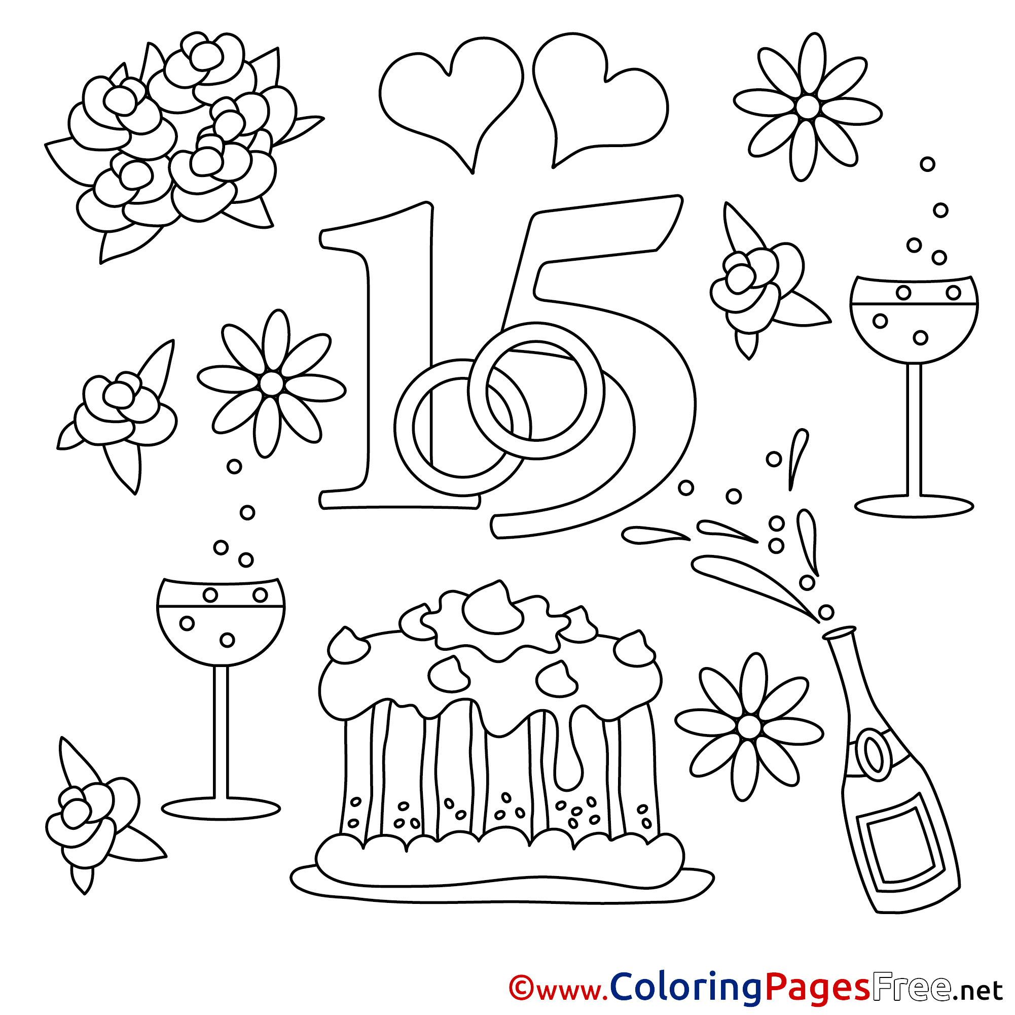 Title of Coloring Sheet: 15 Years Wedding Colouring Page free download