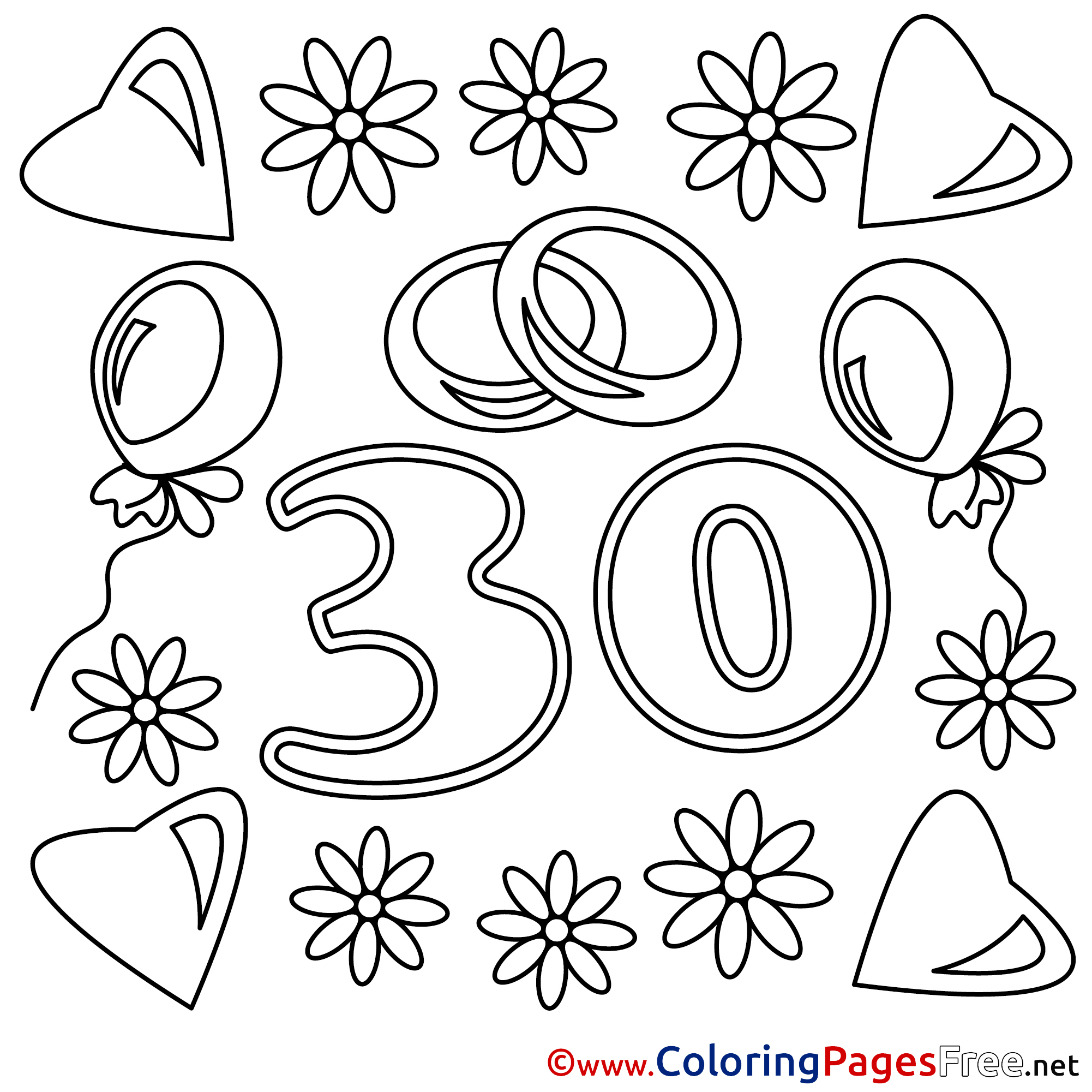 Title of Coloring Sheet: 30 Years Wedding download Coloring Pages