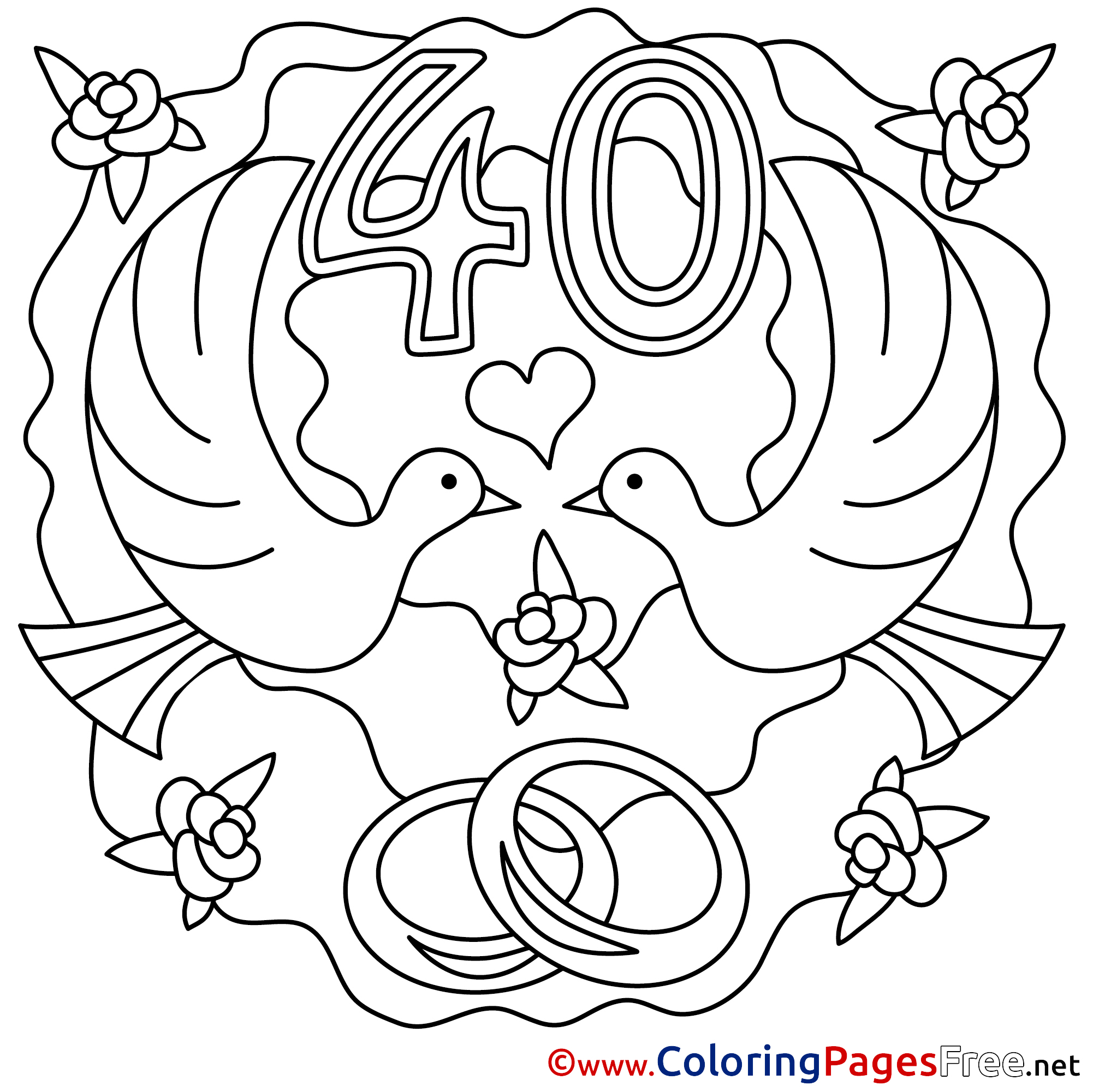 Title of Coloring Sheet: 40 Years Wedding printable Colouring Page for Kids