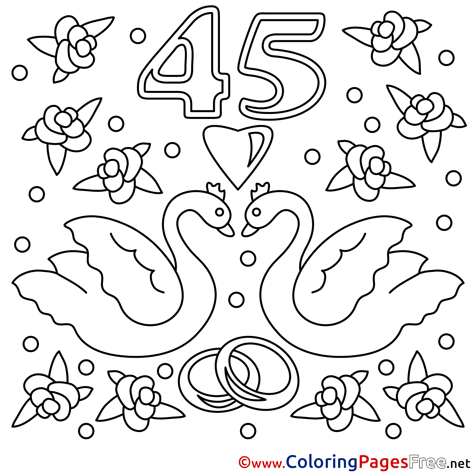 Title of Coloring Sheet: 45 Years Wedding printable Coloring Sheets download