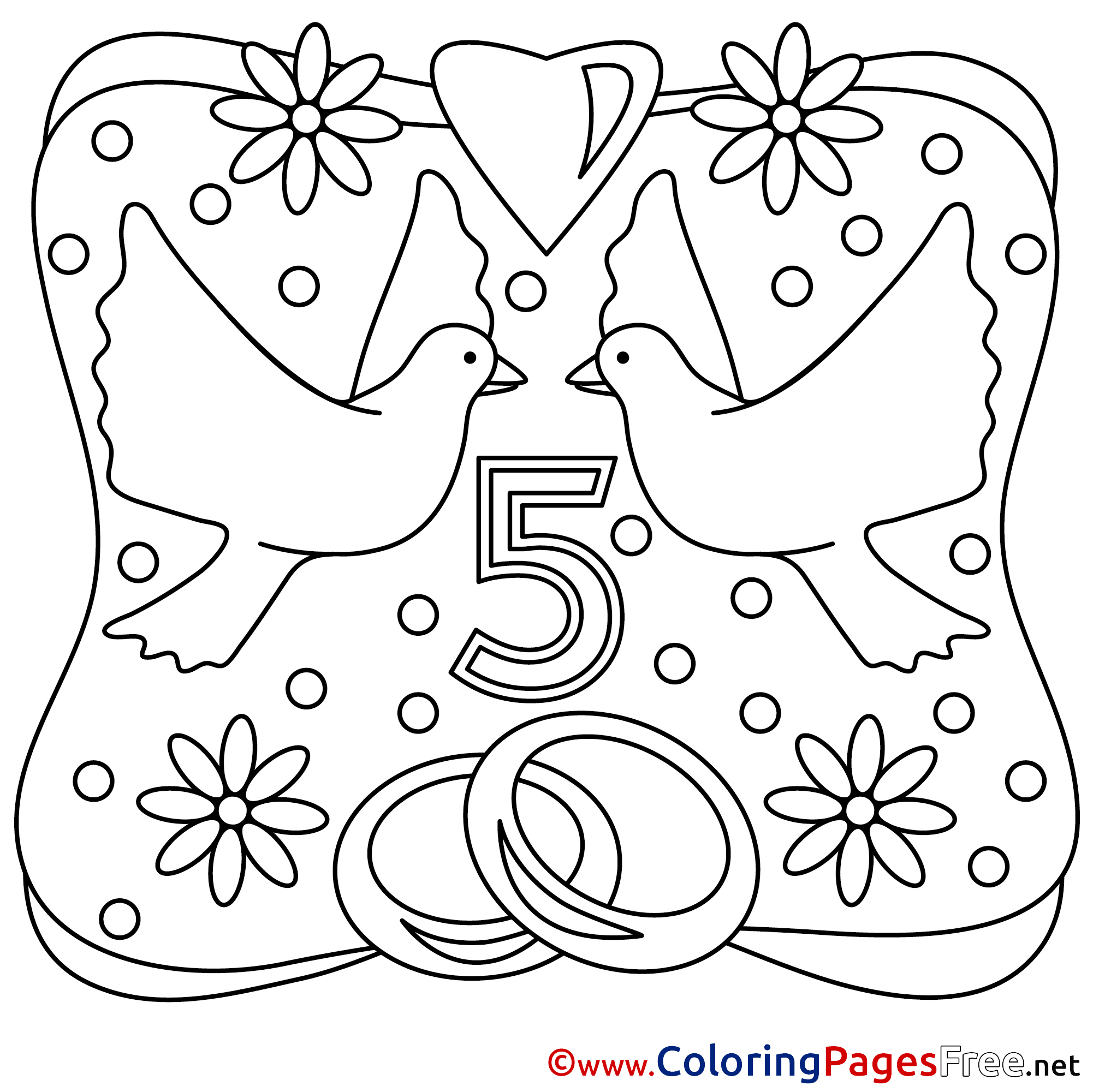 Title of Coloring Sheet: 5 Years Wedding Colouring Sheet download free