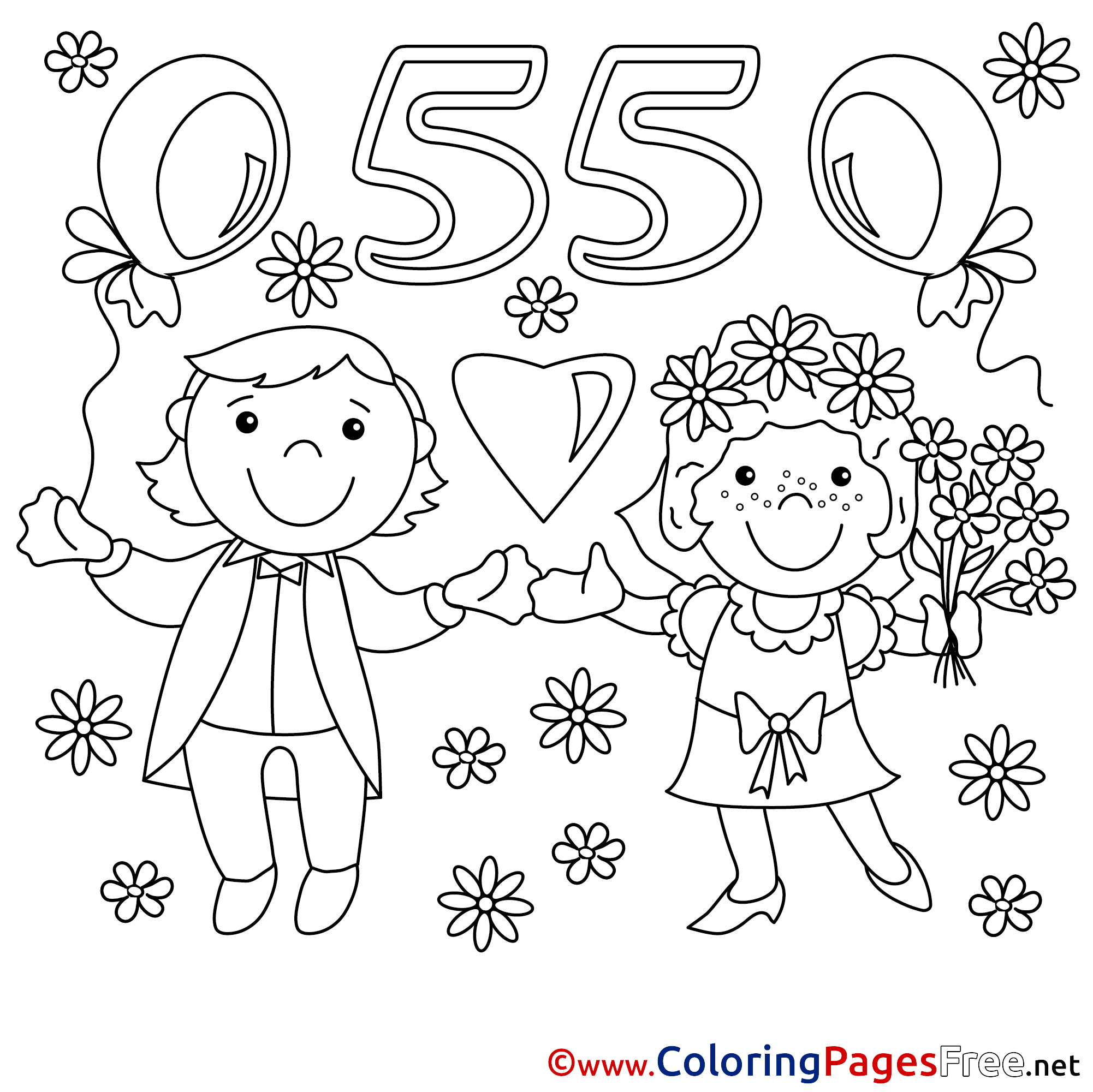 Title of Coloring Sheet: 55 Years Wedding download Coloring Pages for Kids