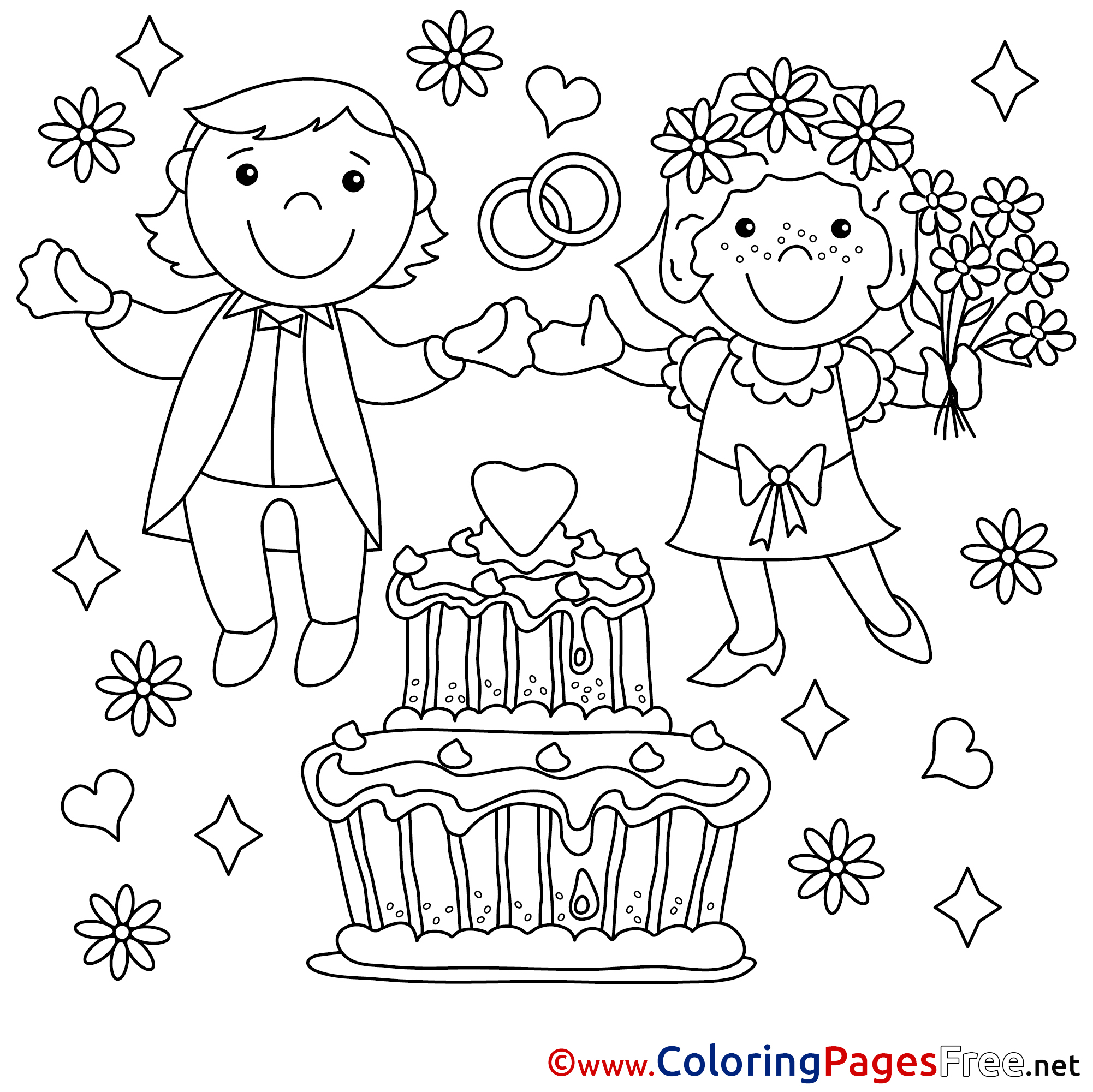 Title of Coloring Sheet: Cake printable Coloring Pages Wedding for free