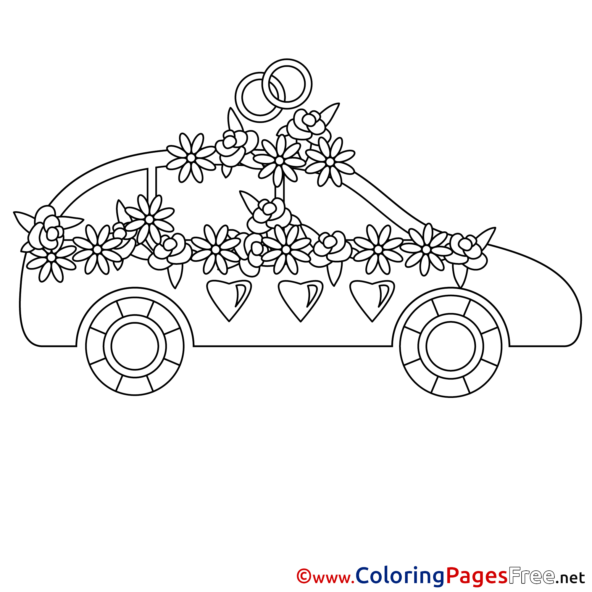 Title of Coloring Sheet: Car Flowers Wedding printable Colouring Page for Kids