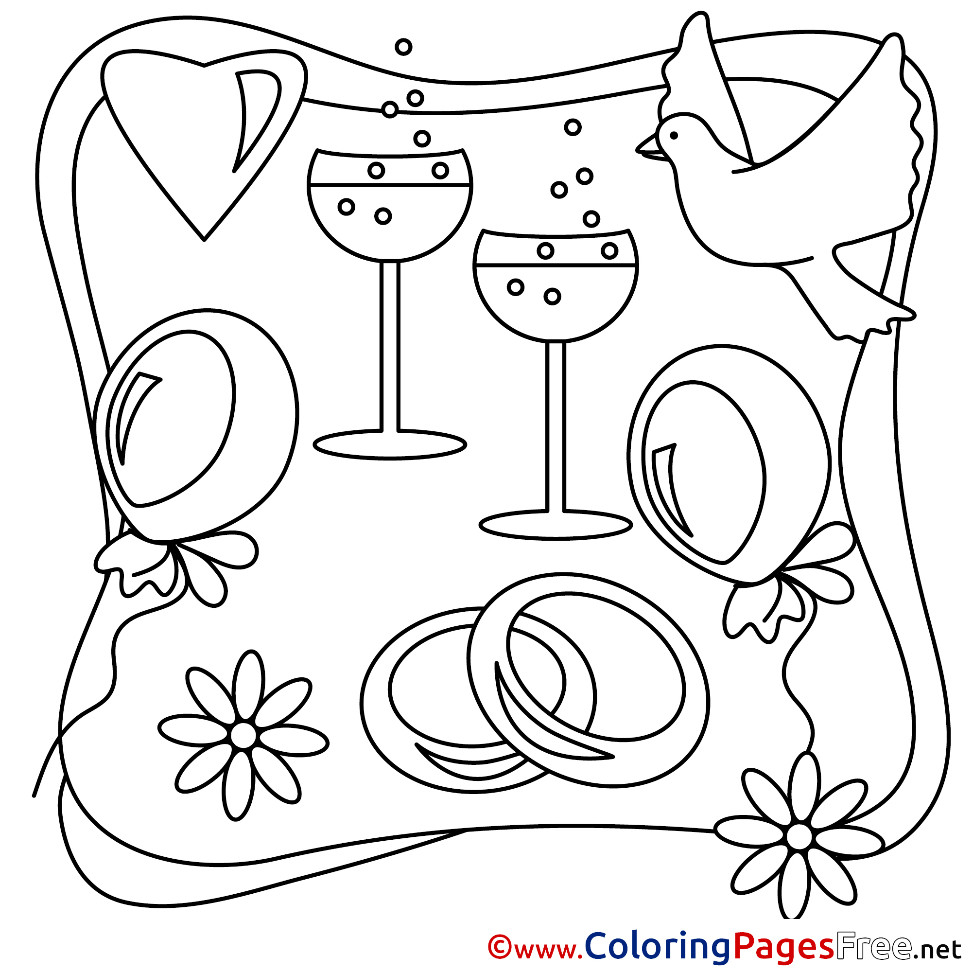 Champagne Wedding Coloring Pages download for free