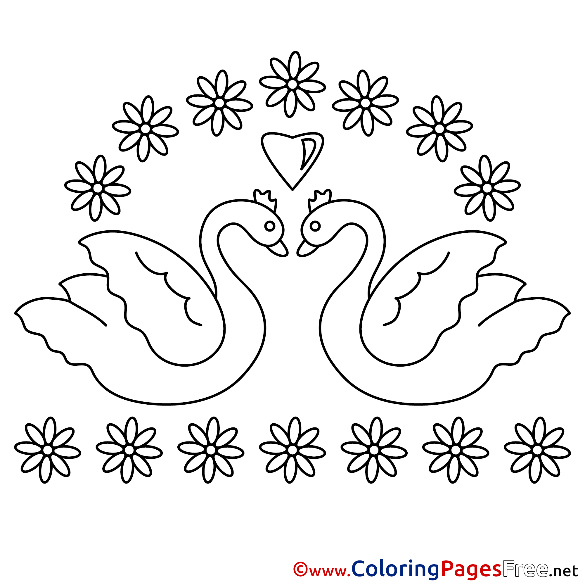 Title of Coloring Sheet: Swans Flowers Wedding Colouring Sheet download free