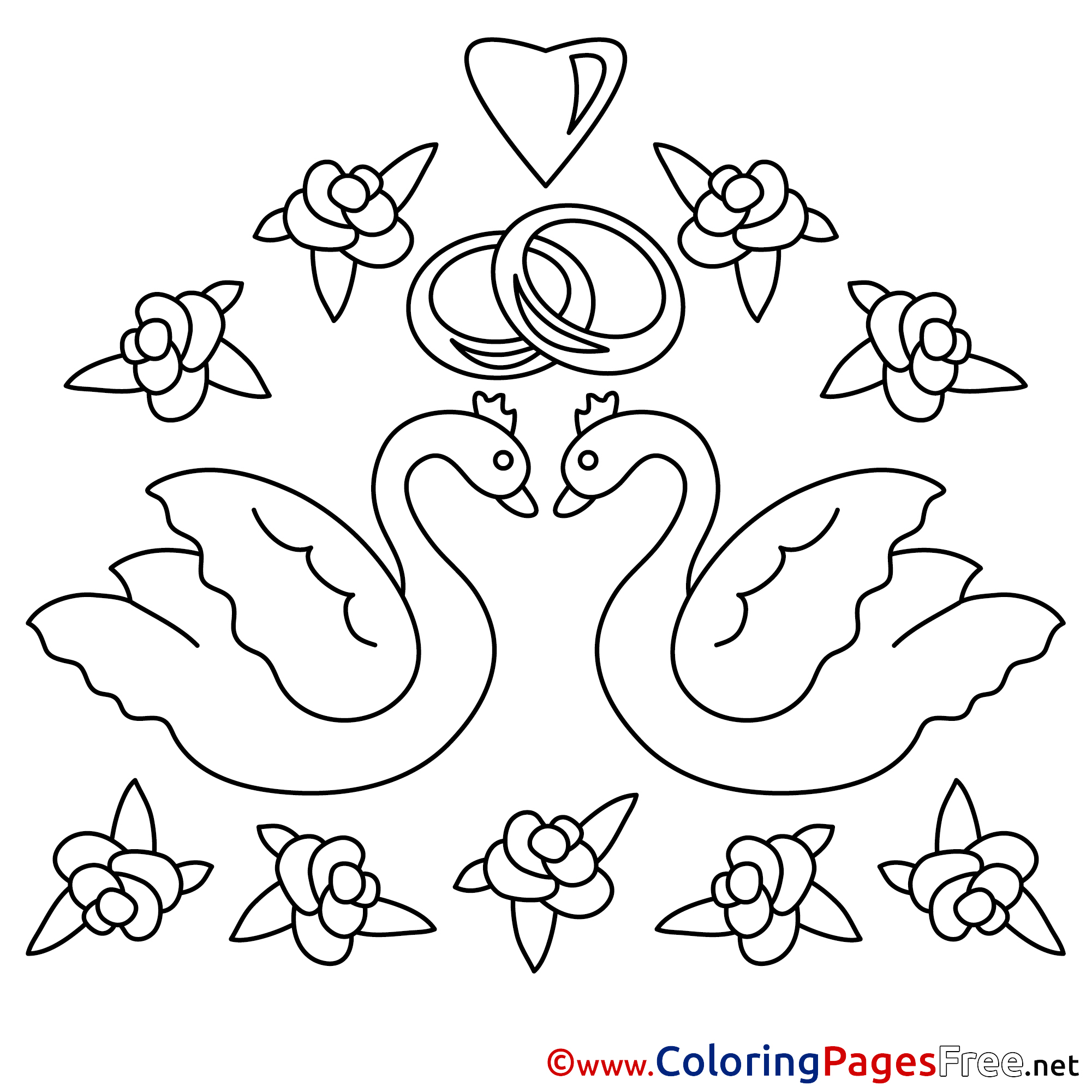 Title of Coloring Sheet: Swans Wedding Flowers Colouring Sheet download free