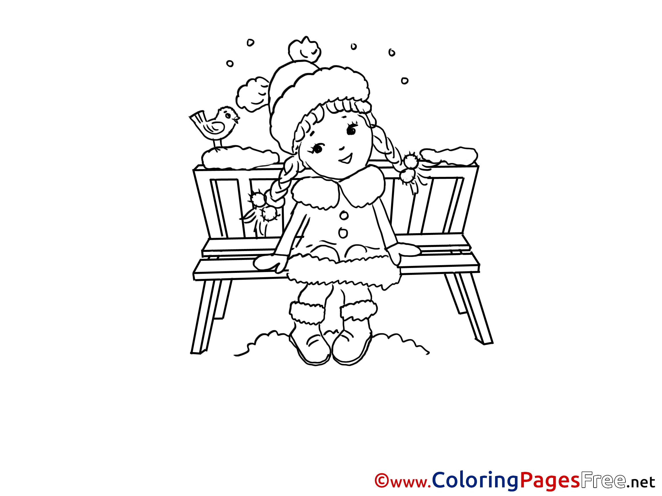 Vorschau-Bild: Bench Winter Girl Coloring Page for Kids