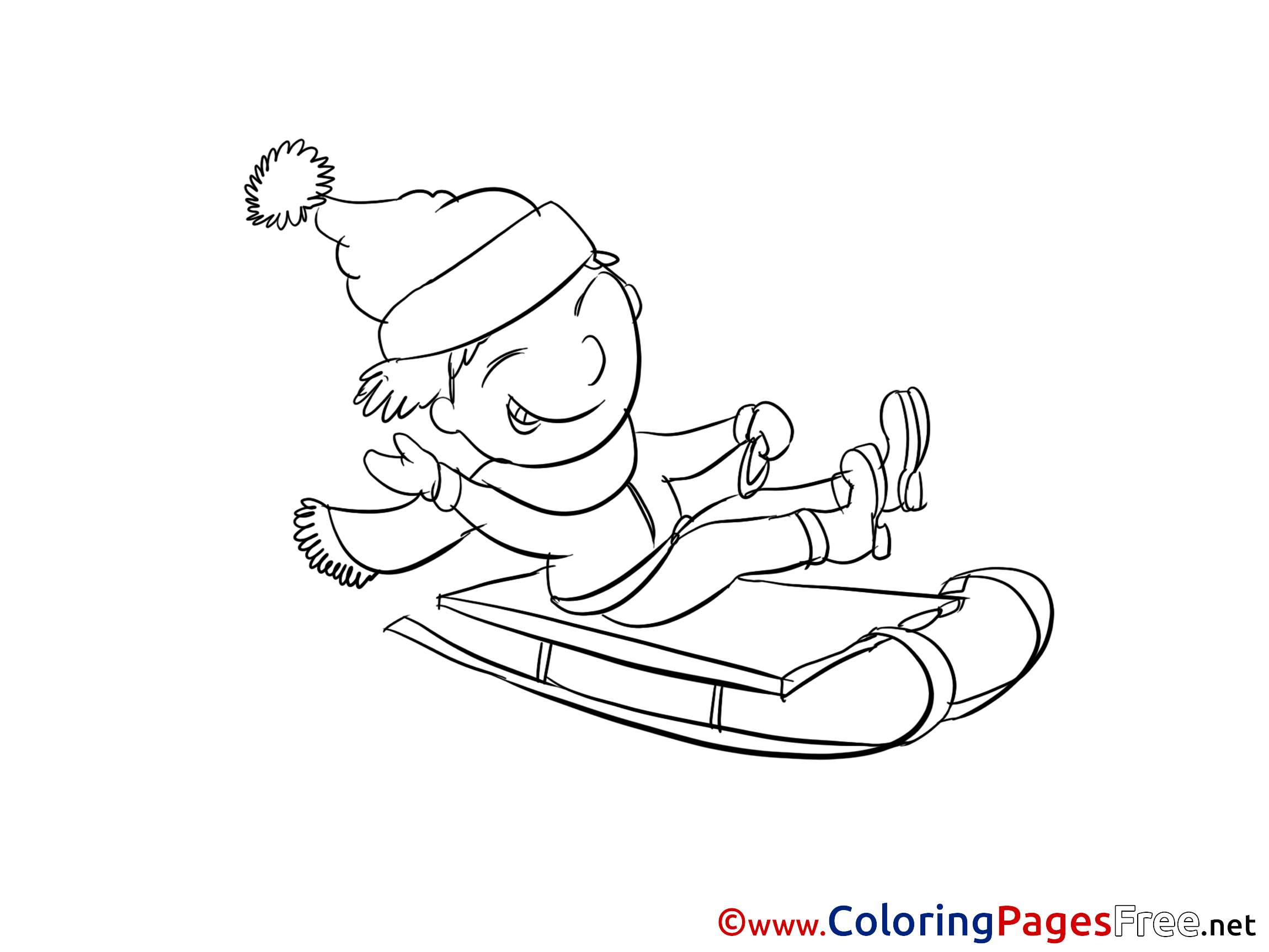 Title of Coloring Sheet: Boy Sleigh Winter free Coloring Sheets